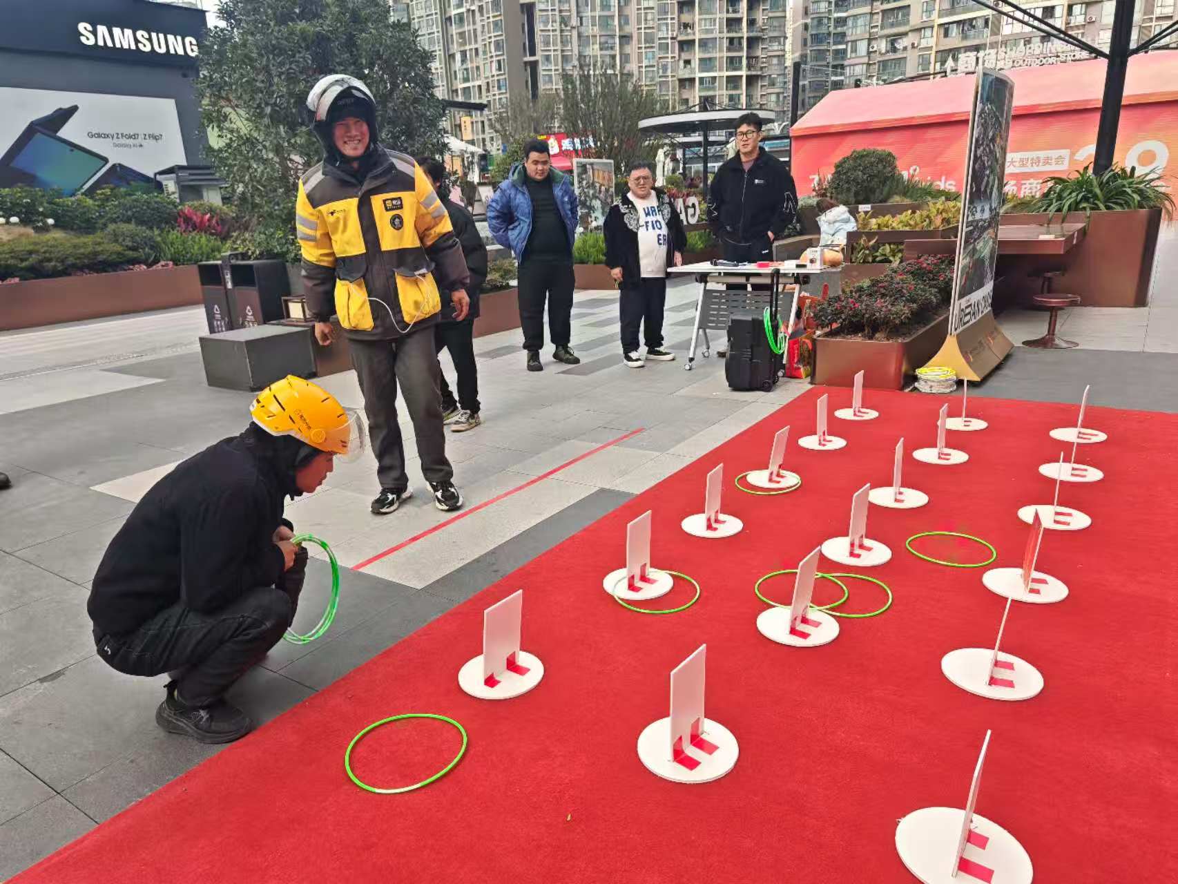本次活动以“趣味互动+福利派送”为核心,设置问答闯关、趣味套圈等环节。问答题目聚焦商圈党群服务中心、龙吉社区骑手友好场景建设、基层治理参与等实用内容,简单易懂且贴近日常。参与者们踊跃答题,在轻松互动中加深对辖区服务资源的认知。参与者答对1题即可解锁1个套圈,全部答对可获得3个套圈,现场设置免费体检券、亲子套票、餐饮及奶茶兑换券及定制参与奖等丰厚奖品,套中即领,趣味十足。此次活动共发放各类奖品100余份,实现“人人有收获,个个有笑颜”,现场欢呼声不断,氛围热烈。