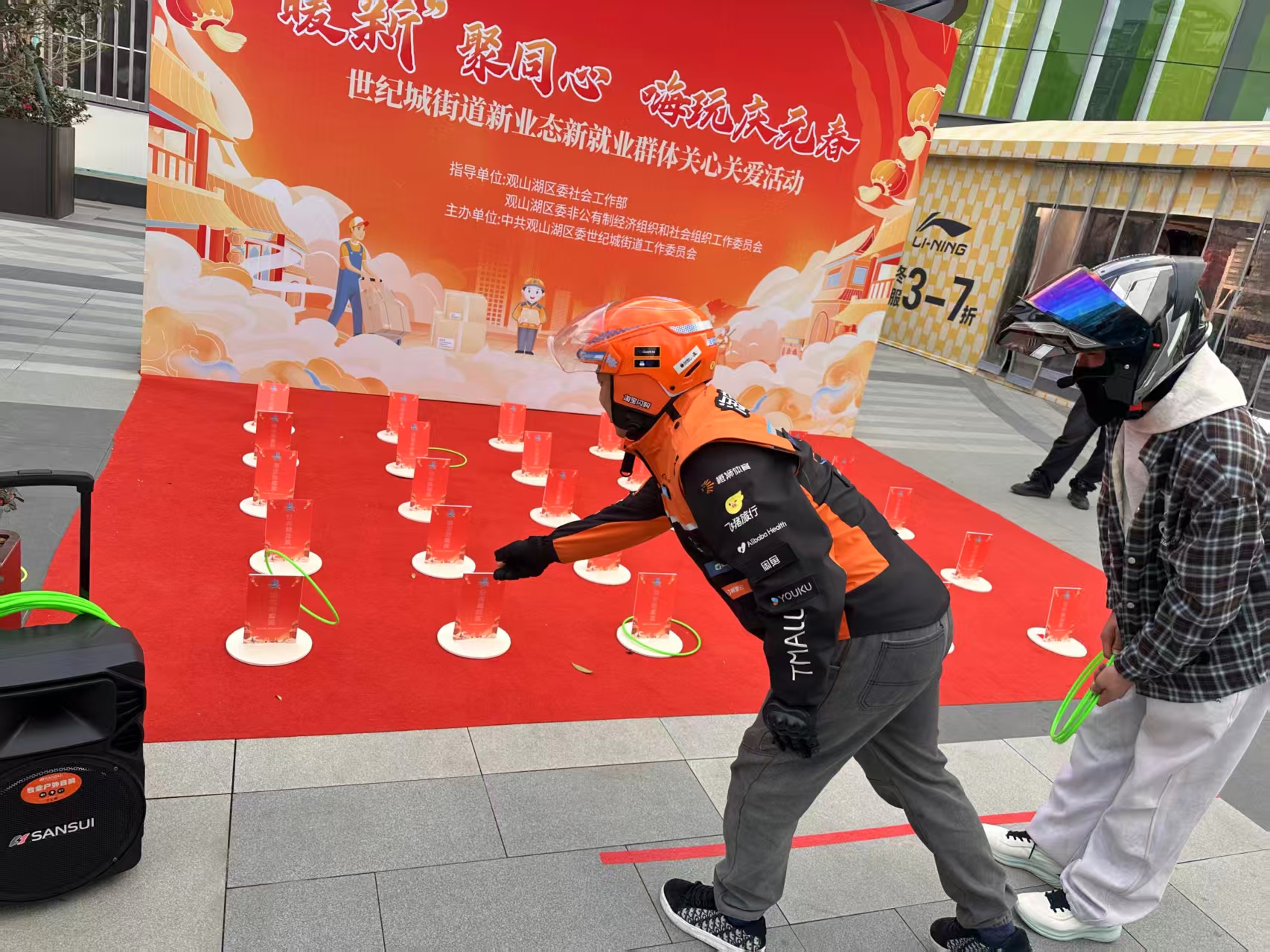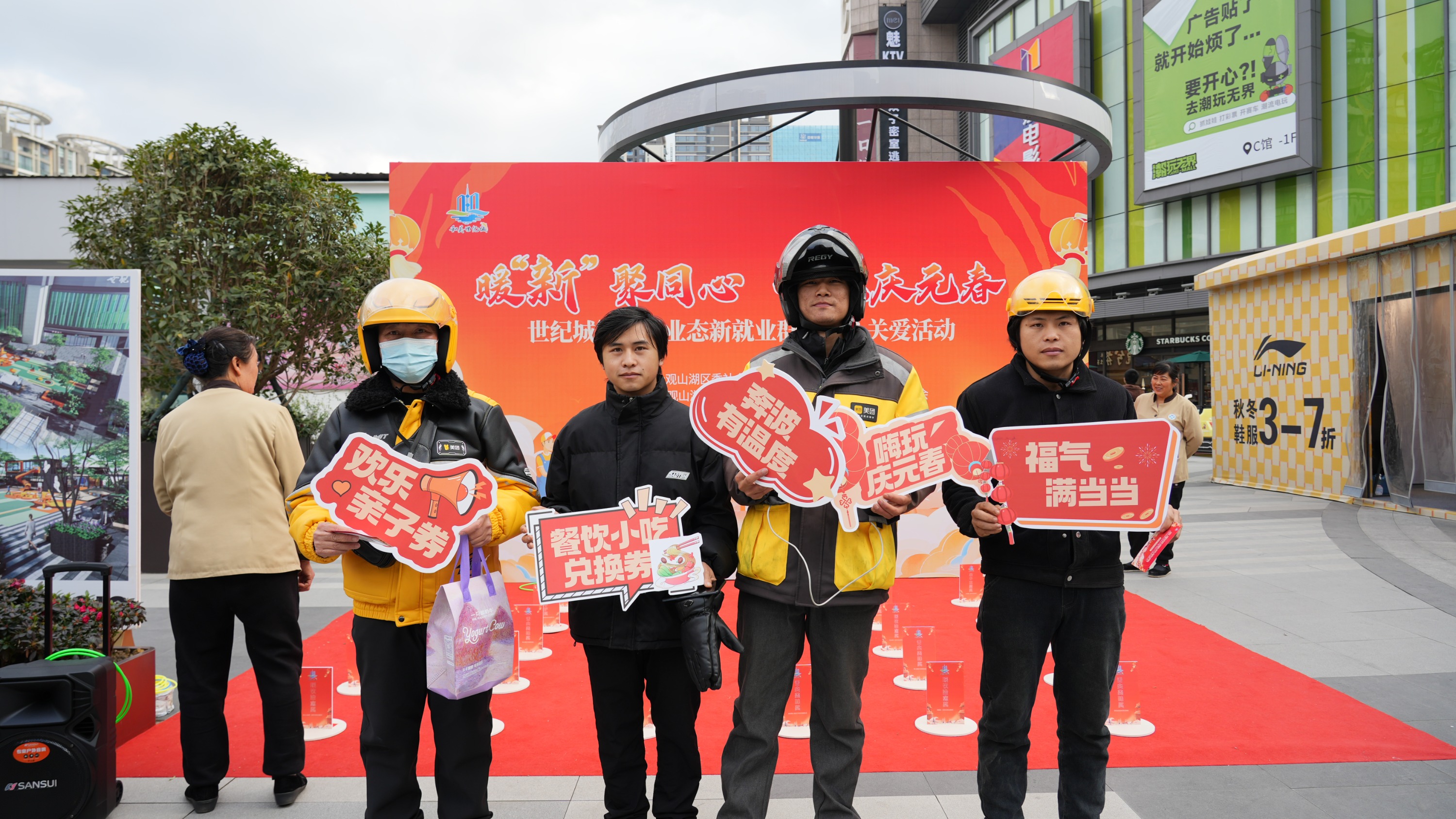 为进一步凝聚新就业群体力量,增进其对辖区服务资源的了解与社区归属感,12月18日,观山湖区世纪城街道党工委在世纪金源购物中心成功举办“暖‘新’聚同心 嗨玩庆元春”新业态新就业群体关心关爱活动。辖区外卖骑手、环卫工人、快递员、网约车司机等新就业群体及户外劳动者代表共50余人参与活动,现场氛围热烈、趣味十足。