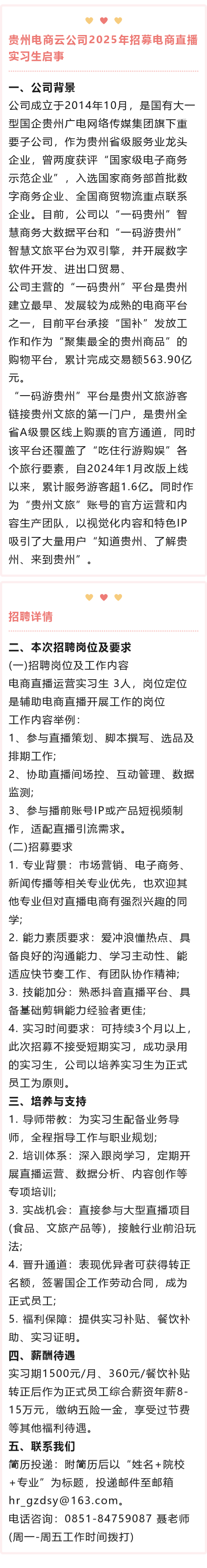 【国企】贵州电商云公司招聘!年薪8-15万元!