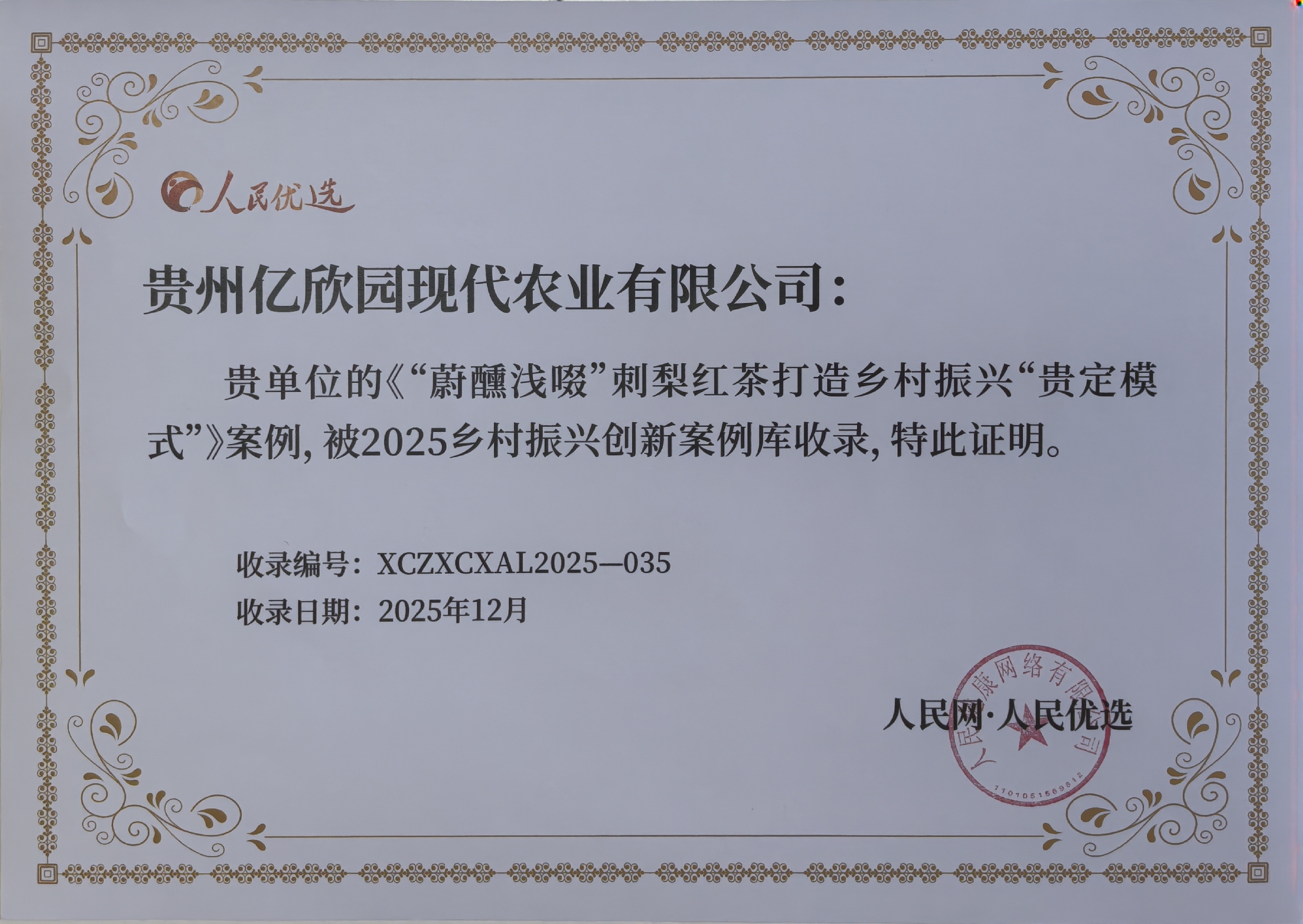 贵州亿欣园“蔚醺浅啜”刺梨红茶入选人民网2025“消费创新+乡村振兴”榜单