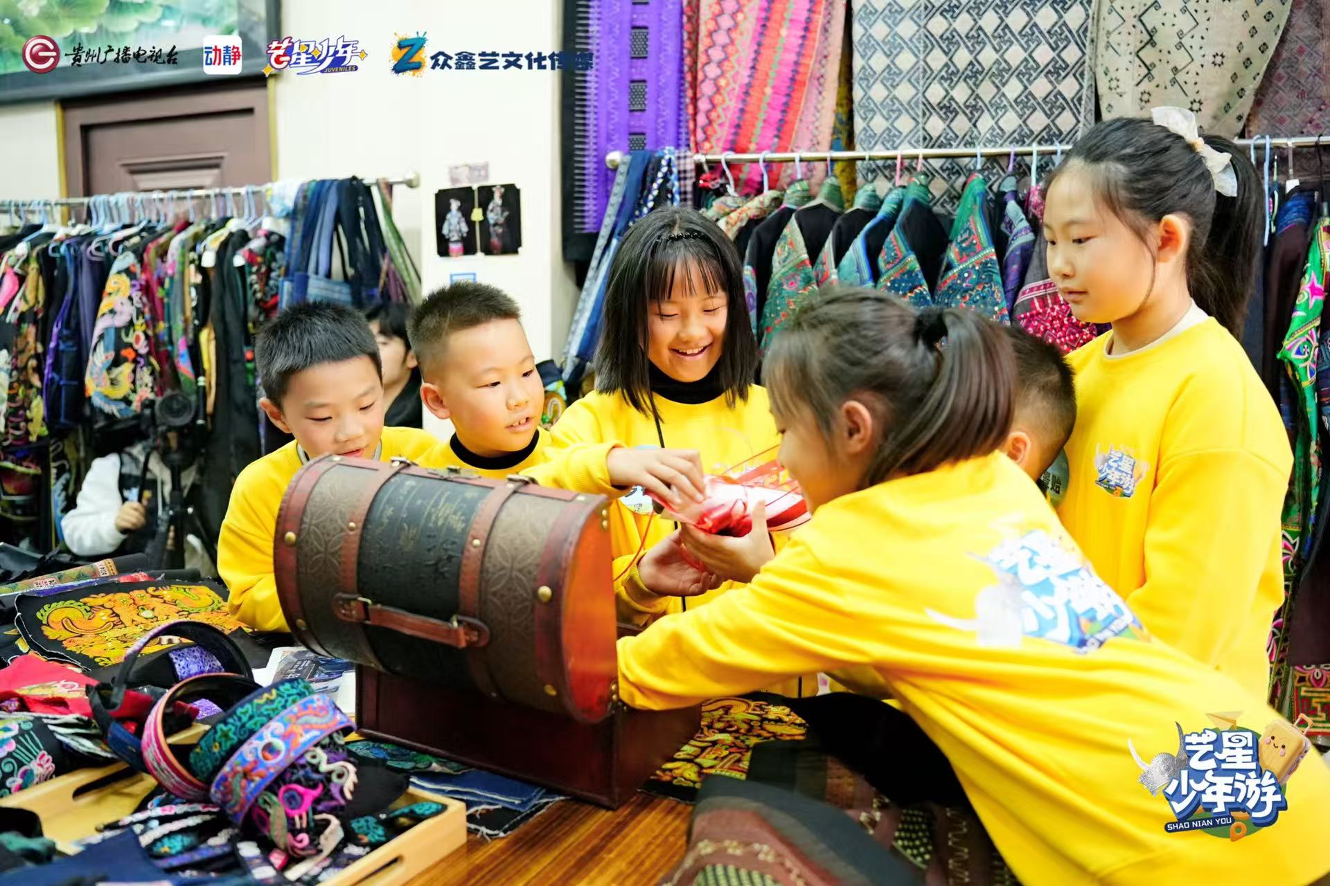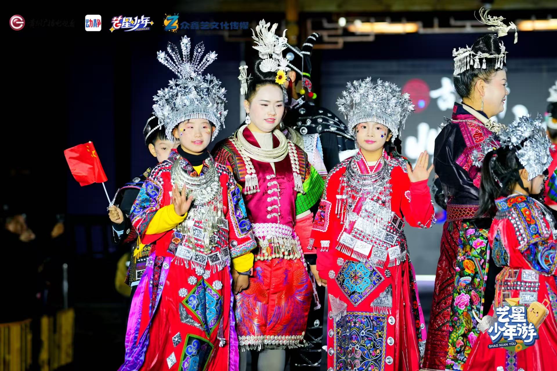 28位艺星少年勇闯苗乡,开启两天一夜的成长挑战!滚铁环传苗语、你划我猜爆笑互动、市集寻宝智慧交锋……从团队协作到自信绽放,从体验苗绣到身着盛装闪耀“村T”舞台。