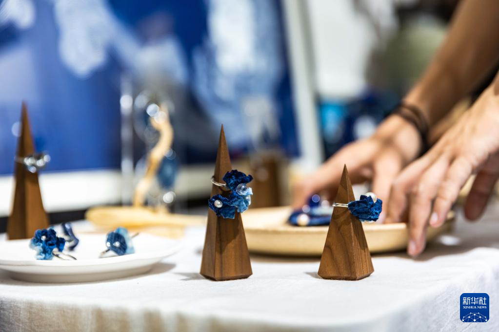 8月18日,张娟娟在蜡染工作室整理制作好的蜡染手工艺品 / 新华社记者 陈熙 摄