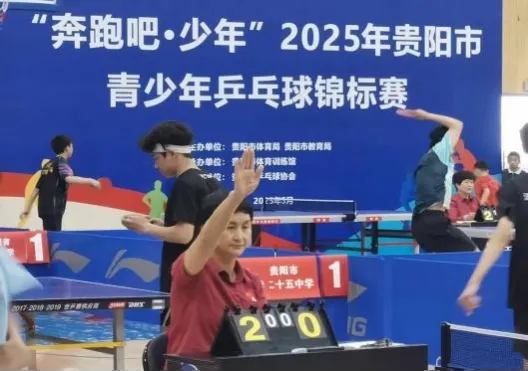 5 月 24 日,由贵阳市体育局、教育局主办,市体育训练馆承办,市乒乓球协会协办的2025年青少年乒乓球锦标赛在实验小学未来方舟分校正式拉开帷幕。此次比赛为期5天,吸引了全市各中小学及青少年乒乓球爱好者踊跃参与。