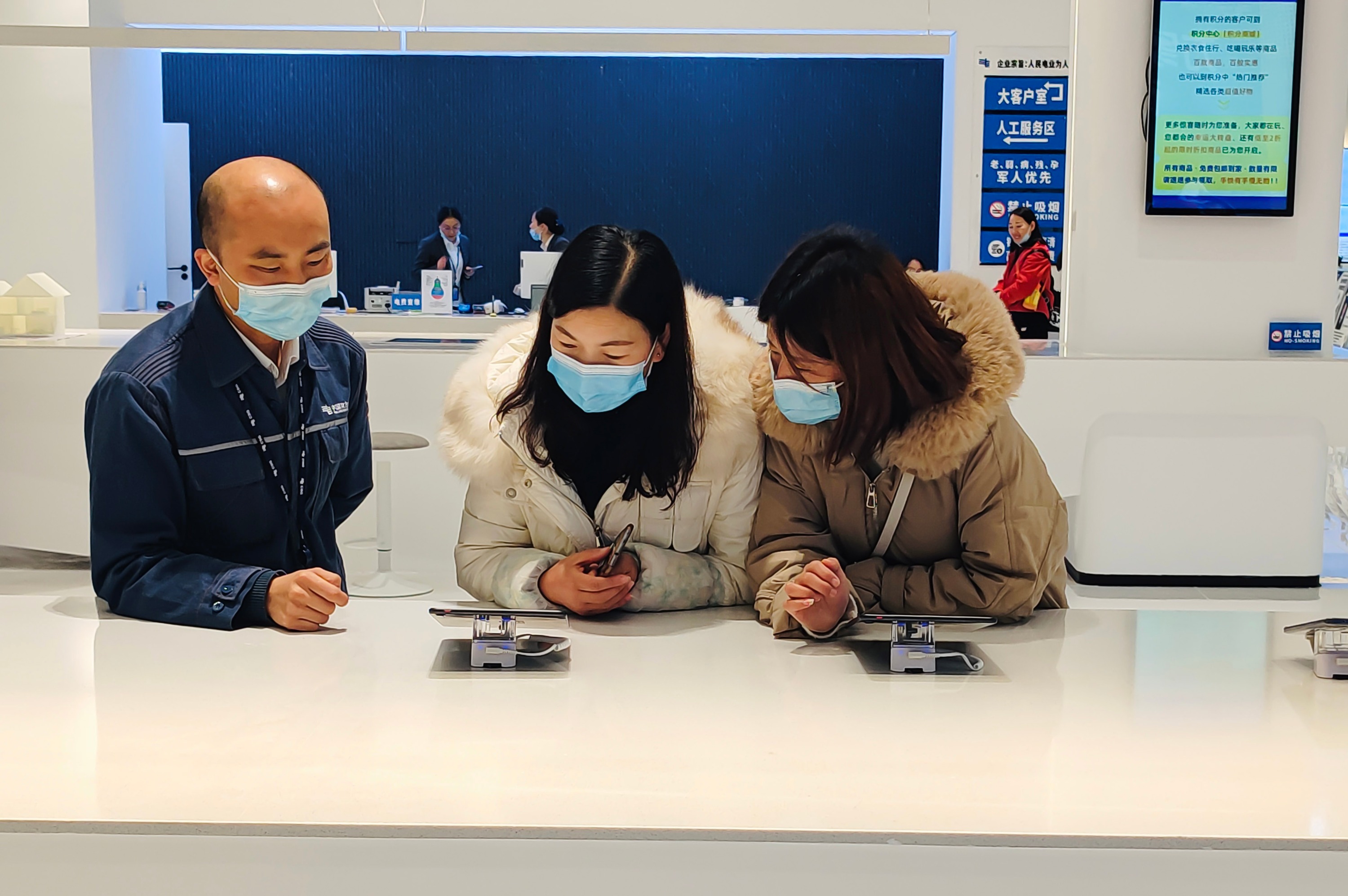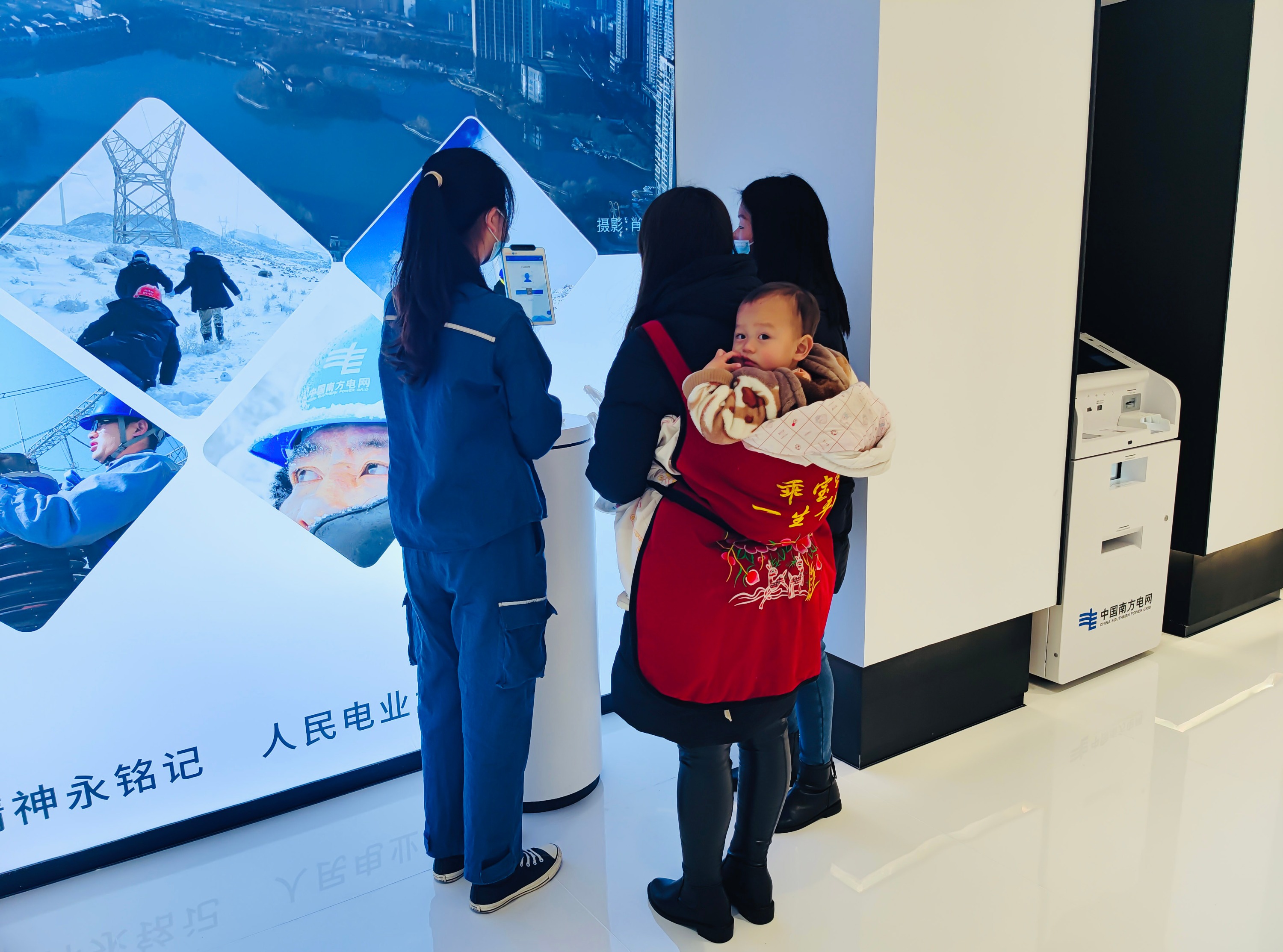 盘州市红果供电所副所长谢龙龙说:“这一次红果供电所的营业大厅重新升级以后,我们新增了许多智能的营业设备,这些智能用电设备都可以给广大用户带来更好的用电体验,比如支付宝扫脸缴费、自动办理业务终端,都可以使用这些设备自助的办理用电业务查缴电费、打印账单、开具发票,我们还可以通过智能终端,包括客户自己的手机,下载南网在线APP,使用用电日历查看自己每一天的用电情况,轻松掌握自己每一天用了多少度电,也可以掌握自己的耗能情况,我们还新增了智能AR体验,可以通过AR体验的平板展示新能源电车和物联网家居,这些智能的升级可以给广大的用电客户带来更好的用电体验。”