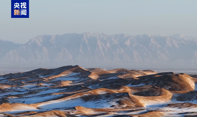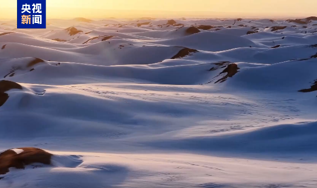 近日,受本轮冷空气影响,内蒙古鄂尔多斯的库布其沙漠迎来罕见降雪。一夜之间,沙海覆上银装,沙丘与积雪交织,宛如一幅静谧而壮阔的天然画卷。(总台记者 赵文俐 赵思雯 高鑫 杭锦旗融媒体中心)