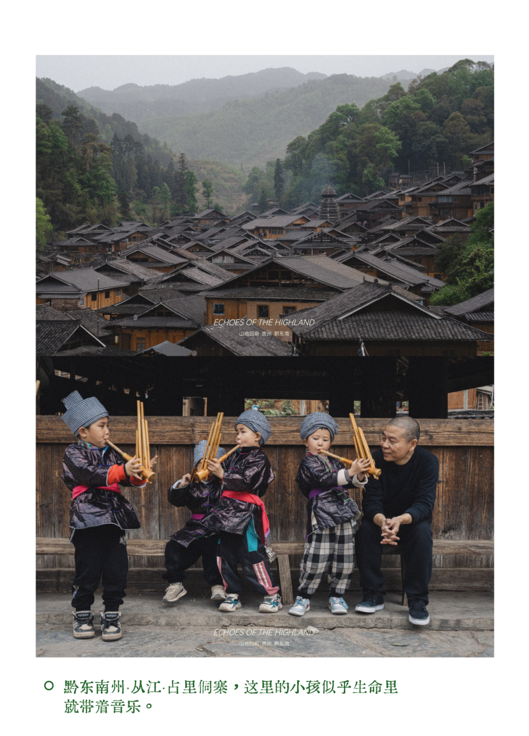 车沿着都柳江向北,驶入占里侗寨所在的河谷。鼓楼广场上,几个身穿侗族服饰的孩子正怯生生地吹着芦笙。苏阳径直走过去,坐在他们身旁。孩子们渐渐围拢过来,不太娴熟的曲调从芦笙孔中飘出,混着稚嫩的嗓音。