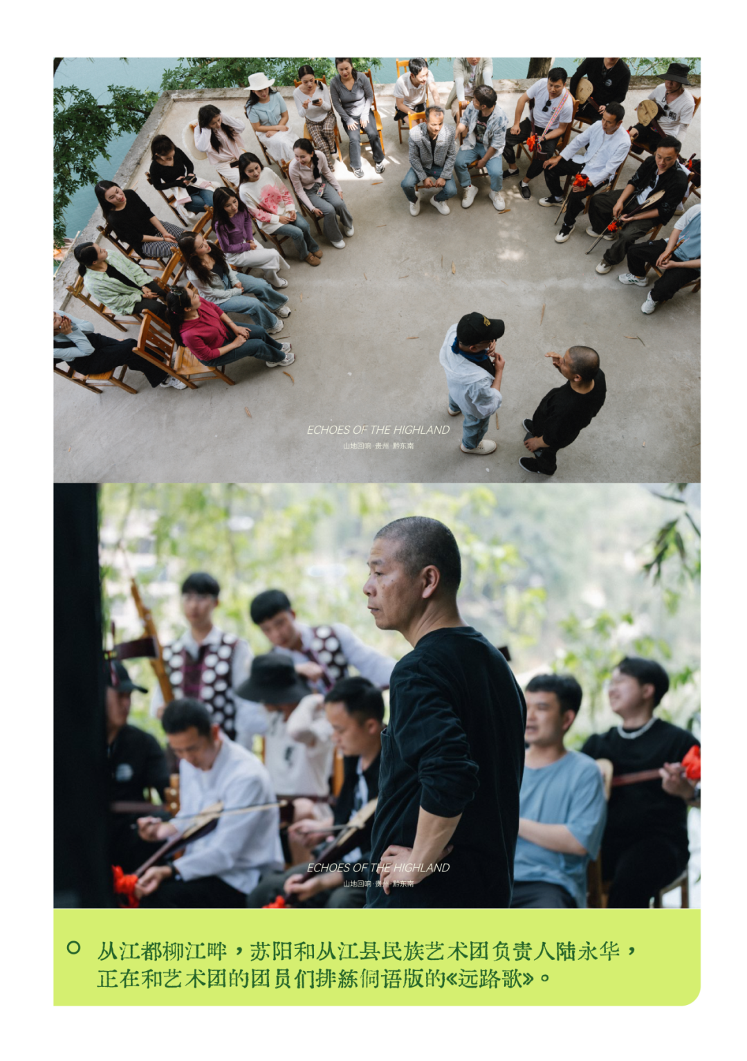 在江边的排练中,从江县艺术团的团员们用侗语试唱《远路歌》——这是苏阳带来的作品,原本诞生于西北的土地。琵琶、二胡、芦笙与吉他交织,他敏锐地捕捉每一次排练中闪动的灵光。