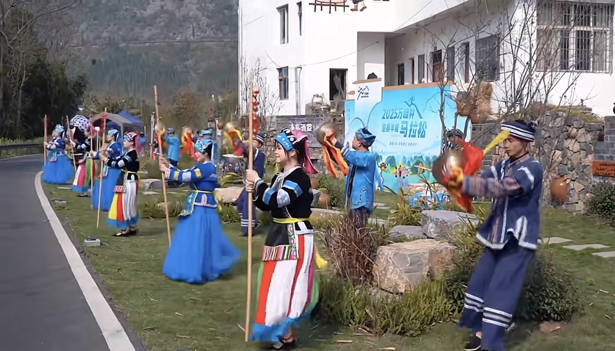 这场马拉松,不止是跑步,更是一场视听盛宴。赛道沿途设置了八县市的民族文化展演点,展演节目丰富多样,包含布依族歌曲《布依迎客歌》、苗族芦笙舞、普安红茶冲泡技艺等,少数民族阿妹阿姐们携手青年民警,为参赛选手打造了一场具有黔西南风情的沉浸式体验,在热情洋溢的呐喊声中,参赛选手们加油奔跑,全力以赴奔向终点。