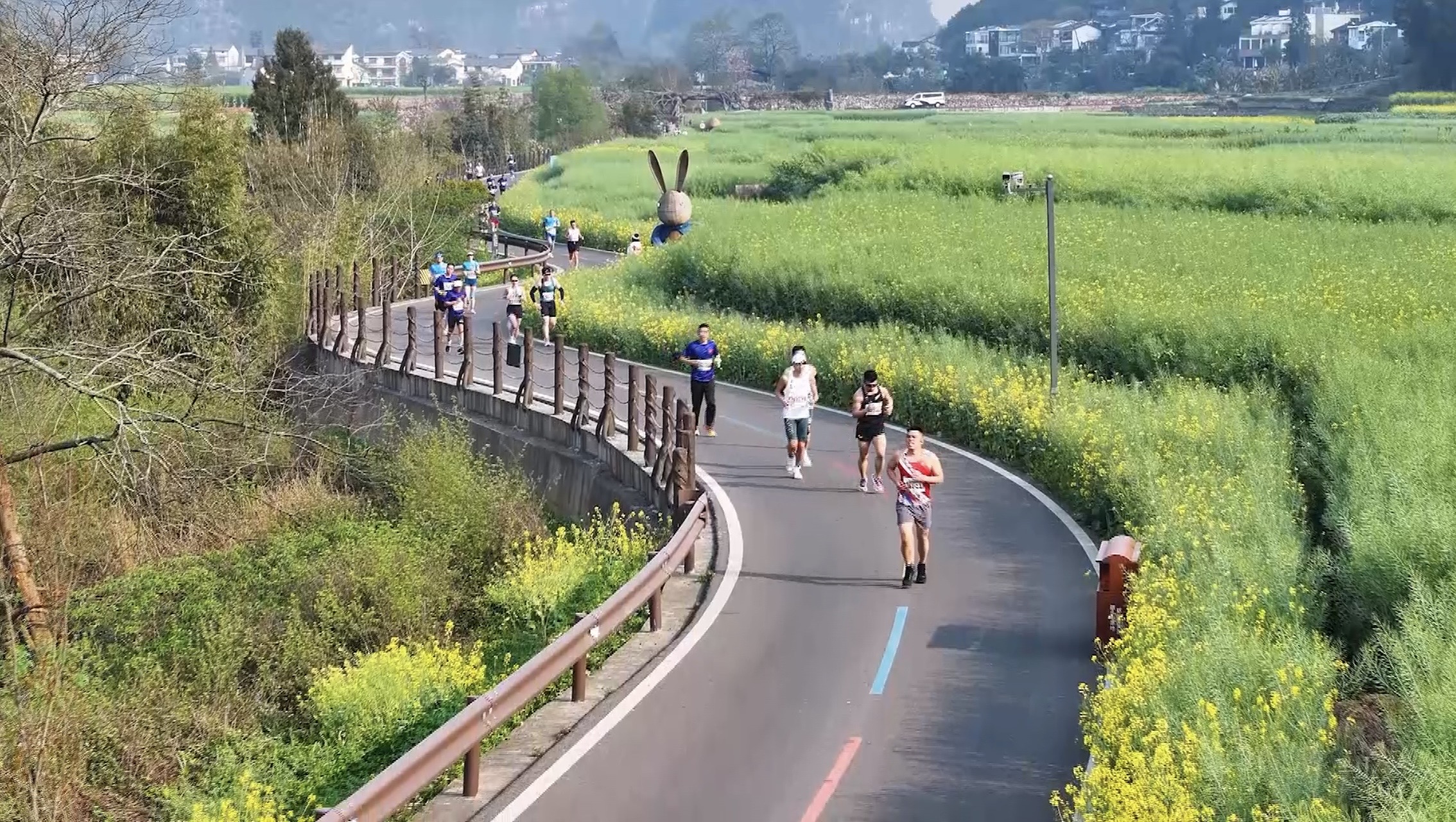 半程马拉松男子组冠军重庆公安郑冠宇说:“在万峰林跑步很舒适,很轻松!”