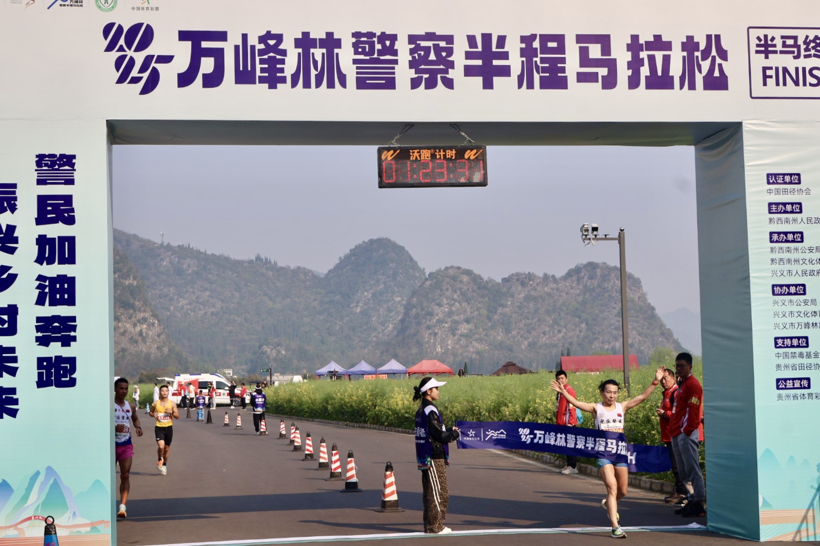 据悉,作为中国田径协会认证B类赛事,2025万峰林警察半程马拉松以 “警民加油奔跑 振兴乡村未来”为主题,由黔西南州人民政府主办,黔西南州公安局、黔西南州文化体育广电旅游局、兴义市人民政府承办,旨在持续引领激励全国公安机关广大民警大力弘扬中华体育精神,同体一心、同向发力为黔西南州乡村振兴“加油奔跑”,以更饱满的热情和更昂扬的斗志为健康中国、体育强国建设贡献坚实力量。