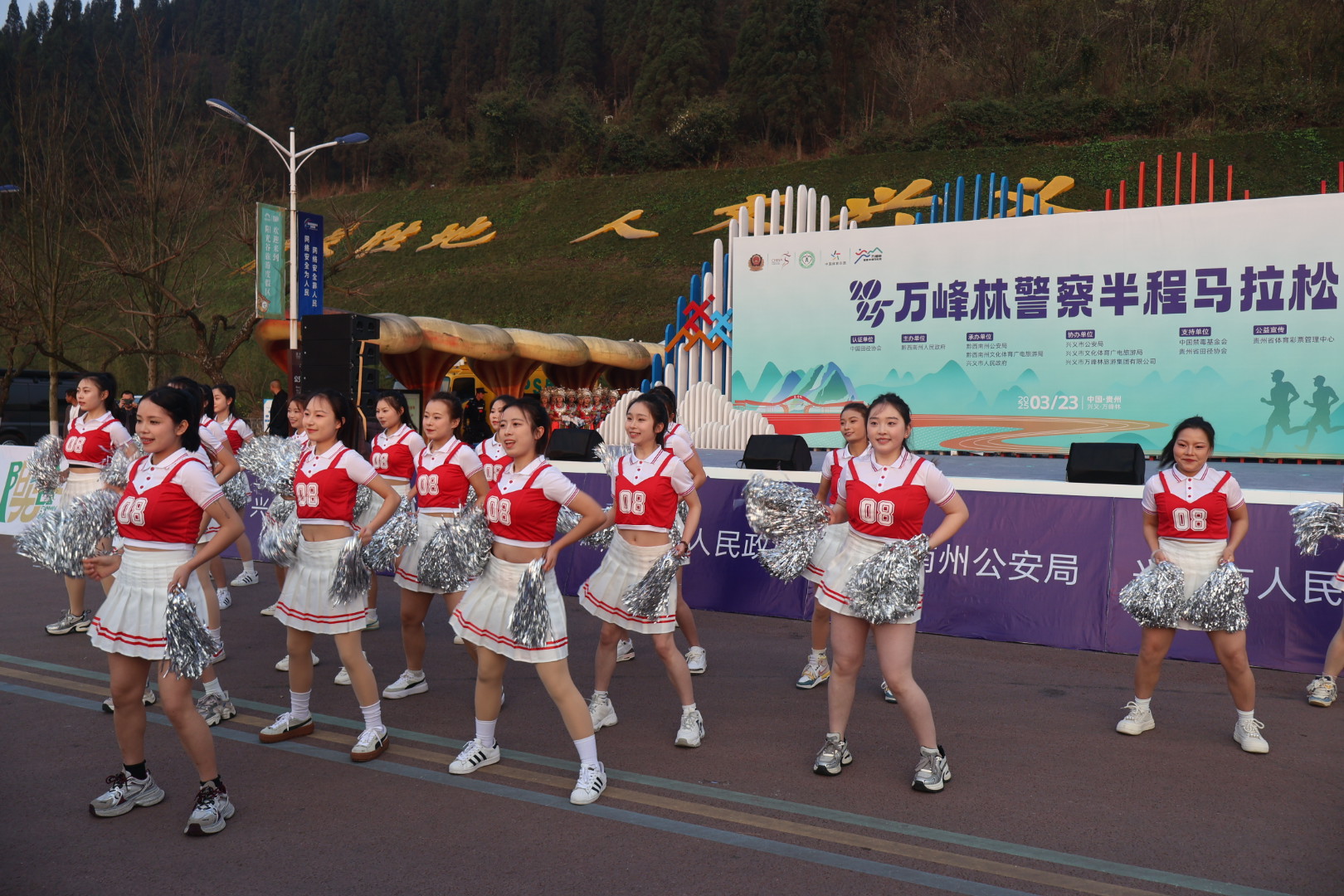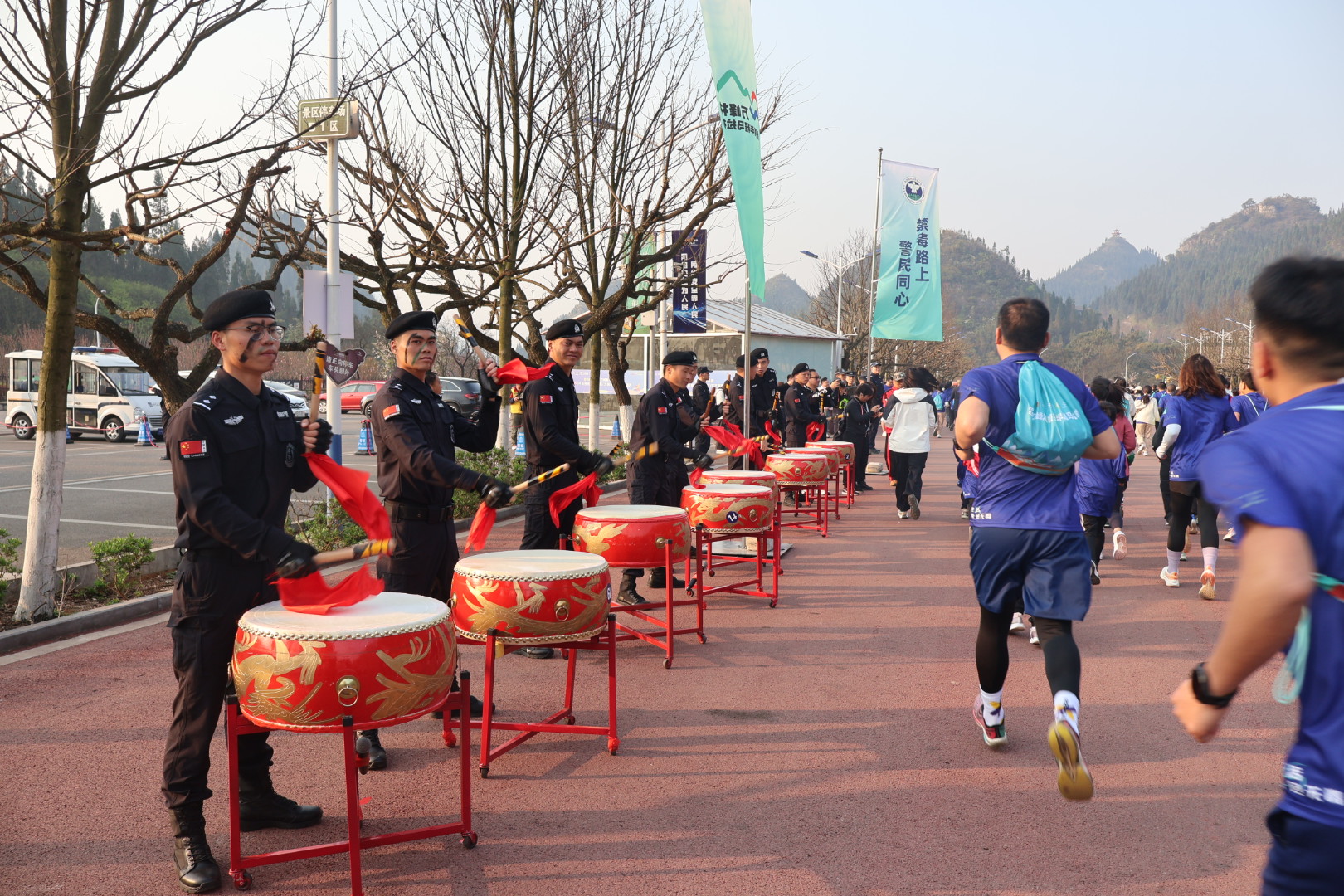 赛前,现场气氛热烈。智能机器互动展示、战鼓表演、竹鼓舞、啦啦操等一系列的暖场节目精彩纷呈,点燃了参赛选手们的热情,他们精神饱满,蓄势待发,等待发令枪响,一起跑进黔西南的春天里。