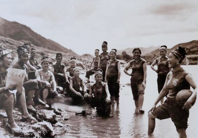 20世纪70年代,台江县革东寨女子篮球队员在清水江边合影留念(《黔东南百年珍影》曾皎飞 翻拍)
