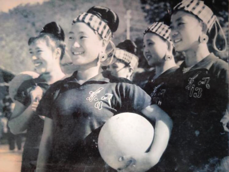 1986年,革东寨女子篮球队在贵州省第二届农民丰收杯篮球比赛中获得第一名(《黔东南百年珍影》曾皎飞 翻拍)