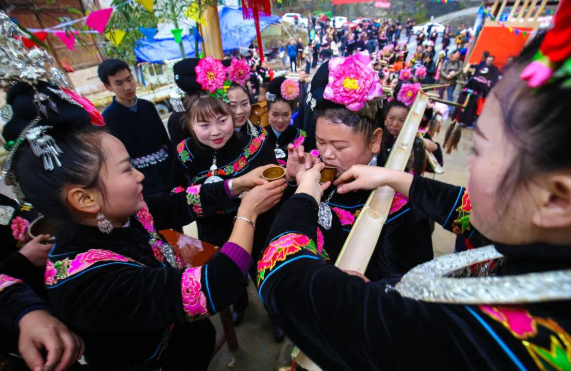 过节时,人们将田中抽穗的谷穗扯三支挂在神龛上祭祖,有的地方将谷穗与陈米同蒸,象征吃新谷。台江的台拱、排羊等地区于农历六月第一个“卯日”过节;张家寨、洋汪等翁你河上游以及台盘阳芳一带的苗寨,则在卯日头一天的寅日晚上先过“寅节”,次日中午才过“卯节”;革一、台盘方黎服饰的苗族是逢第二个“卯日”过节。节日期间会举办“游方”、祭祀、斗牛等民俗庆祝活动,仪式感十足。