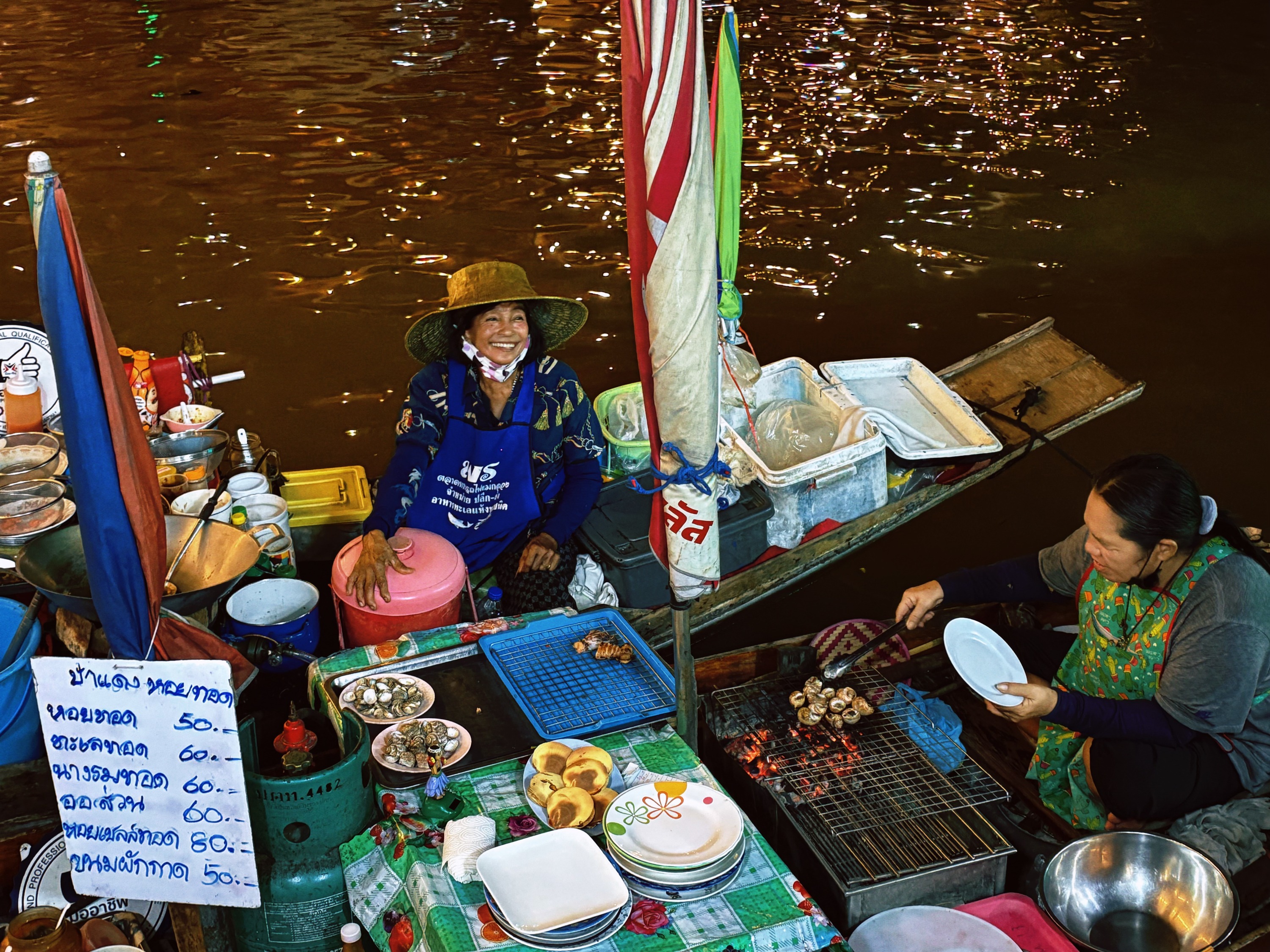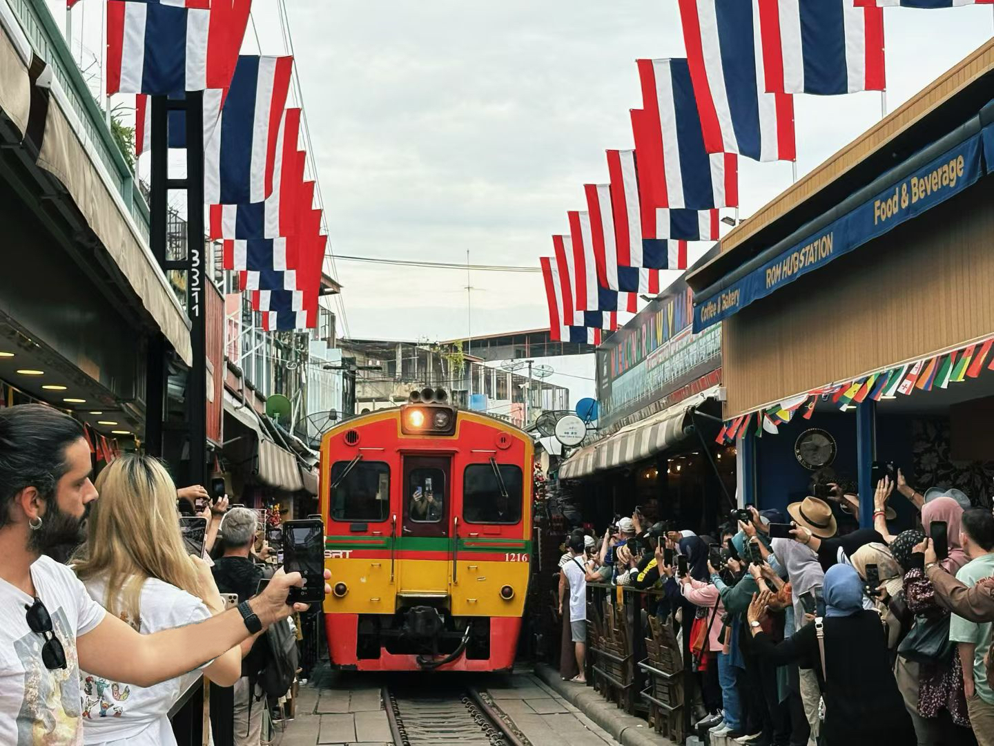 这里被特意标注为 “以本地居民为主要客群的非商业化水上集市”,保留了竹篮交易的原始方式。夜幕下乘长尾船观赏萤火虫的环节,将市集生活与自然生态巧妙融合,奠定了全程“深度体验”的基调。同样让人眼前一亮的还有碧武里府的美功铁路市场,在这里见证摊贩与火车惊险又默契的日常共舞。