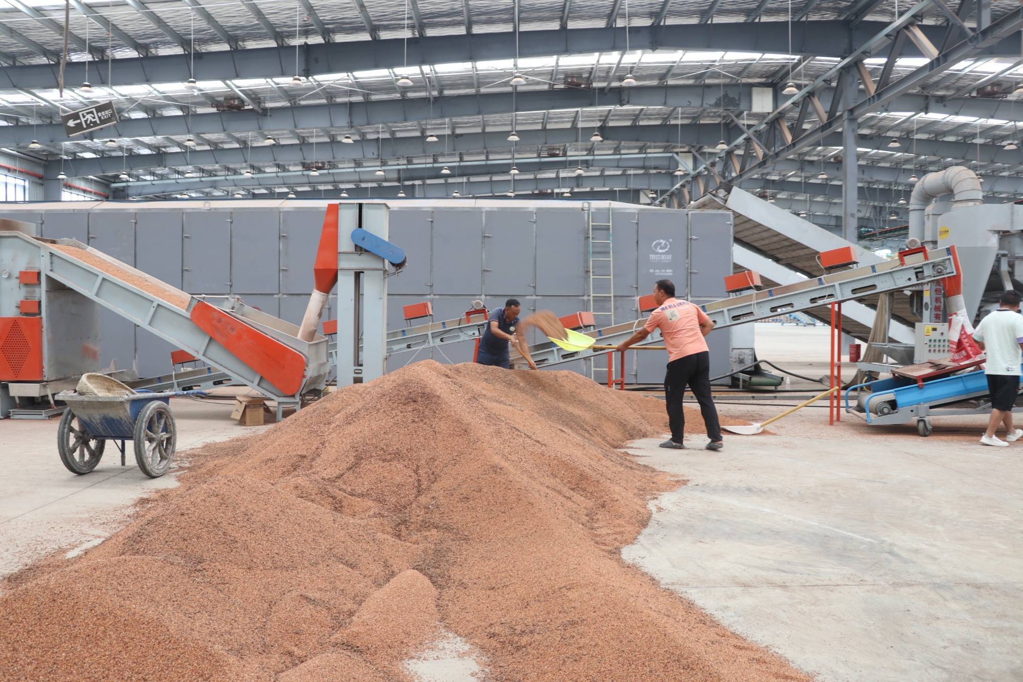 七星关区酒用高粱加工收购中心工人在流水线上作业 (李金苗 摄)