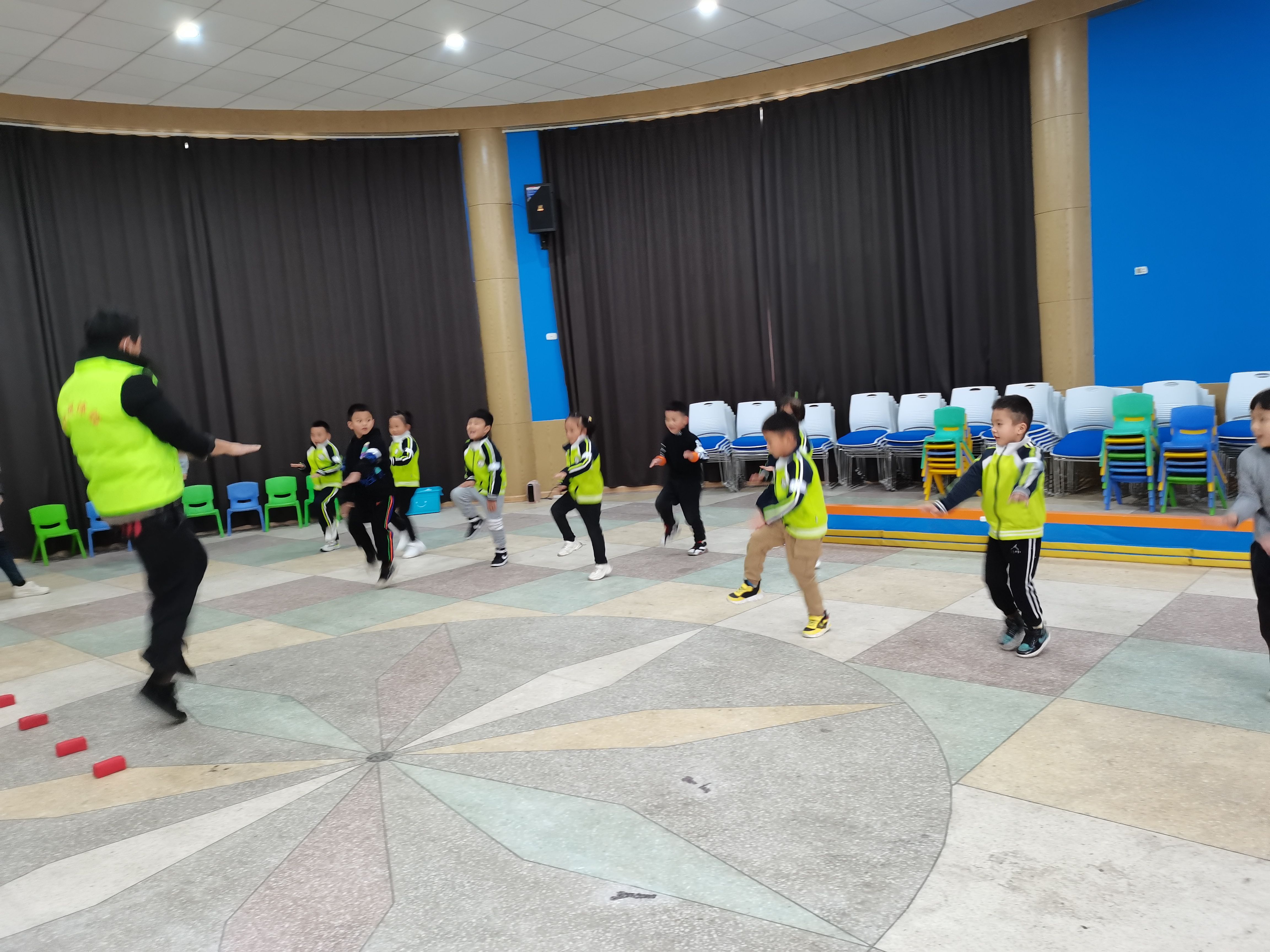监测老师带幼儿做身体拉伸