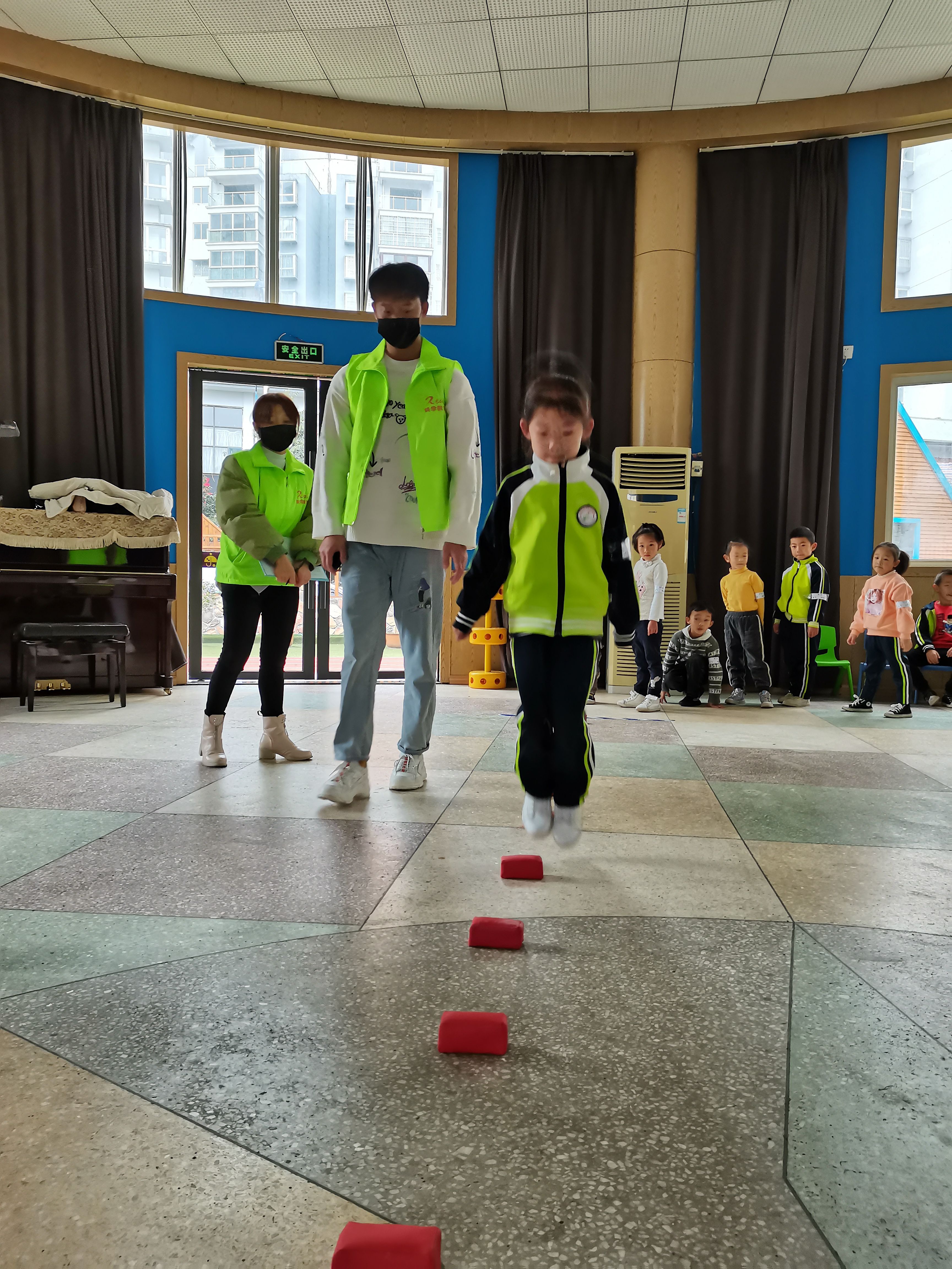 幼儿在监测双脚连续跳项目