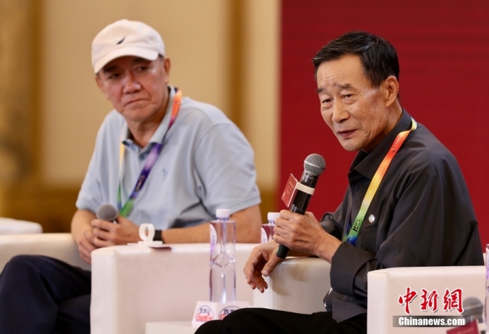 图为李雪健(右)和嘉宾李幼斌。 记者 易海菲 摄