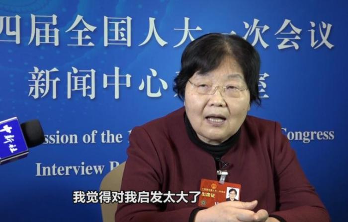 全国人大代表、编剧赵冬苓接受采访。中新视频截图