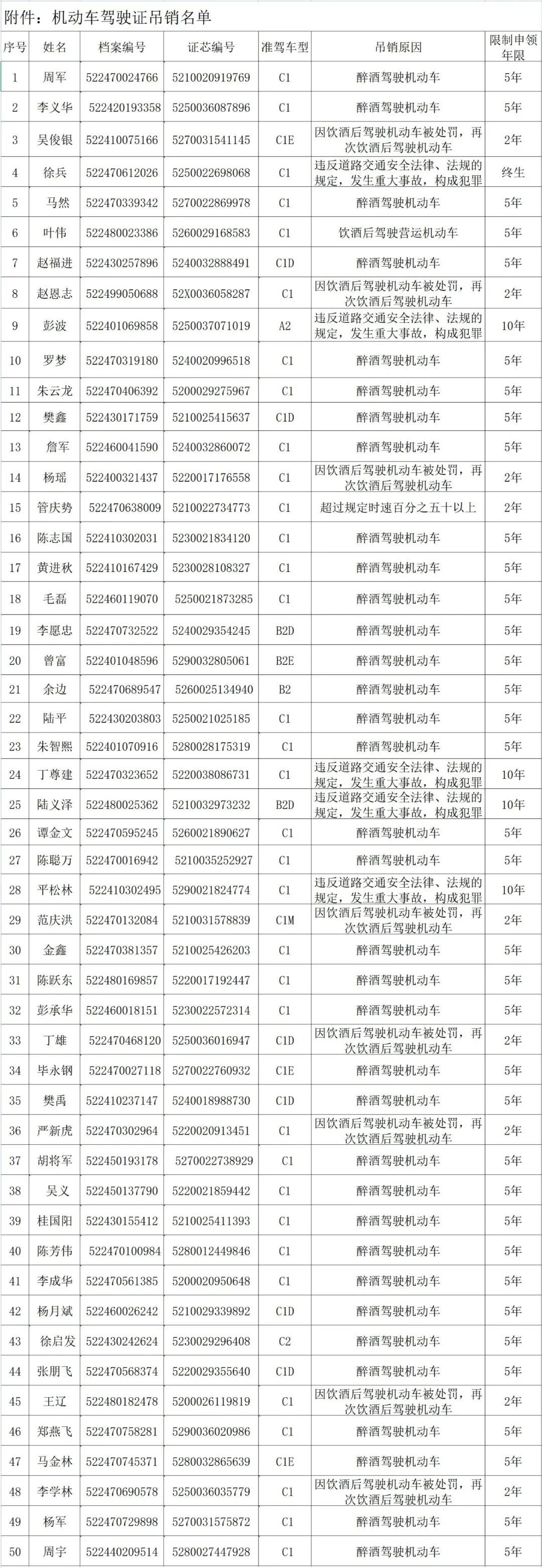 附:机动车驾驶证吊销名单