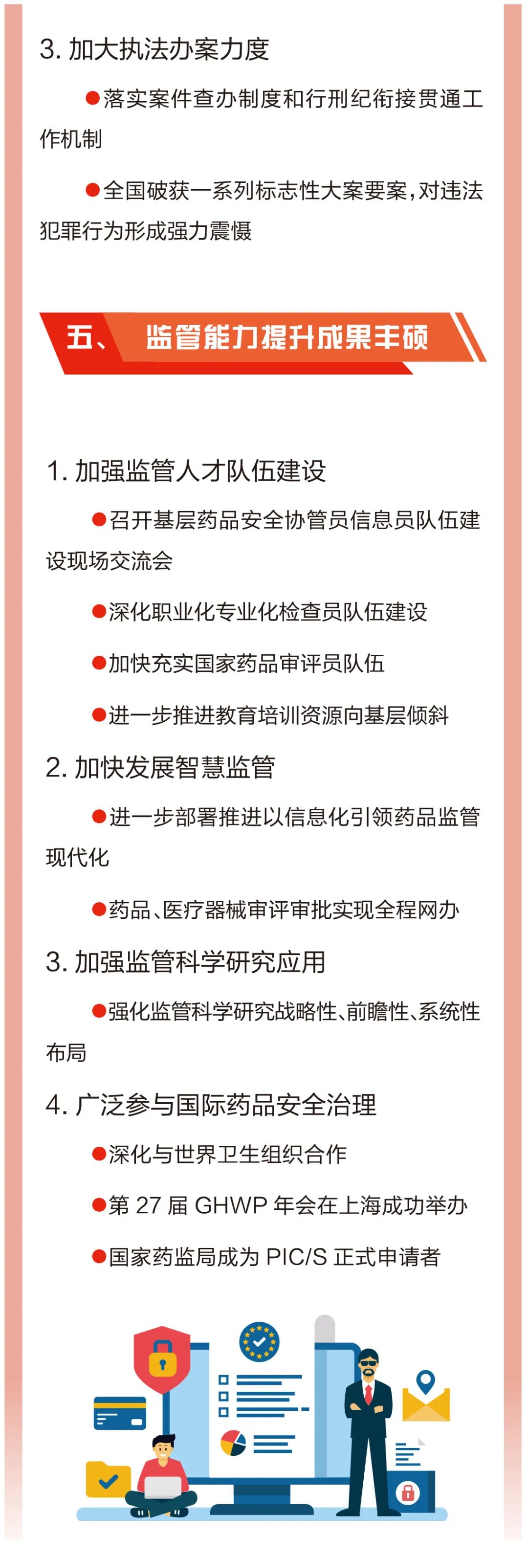 2023年是全面贯彻落实党的二十大精神的开局之年。全国药监系统全面落实“四个最严”要求,讲政治、强监管、保安全、促发展、惠民生取得新成效,药品监管工作迈上新台阶。