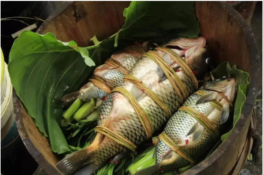 制作工艺考究且精细,选料独特。把新鲜生鱼处理干净后,在鱼肚子里塞入韭菜,在鱼身上抹上食盐、白酒、糟辣酸、葱姜蒜等,再用稻草把鱼捆好,然后蒸熟而成。