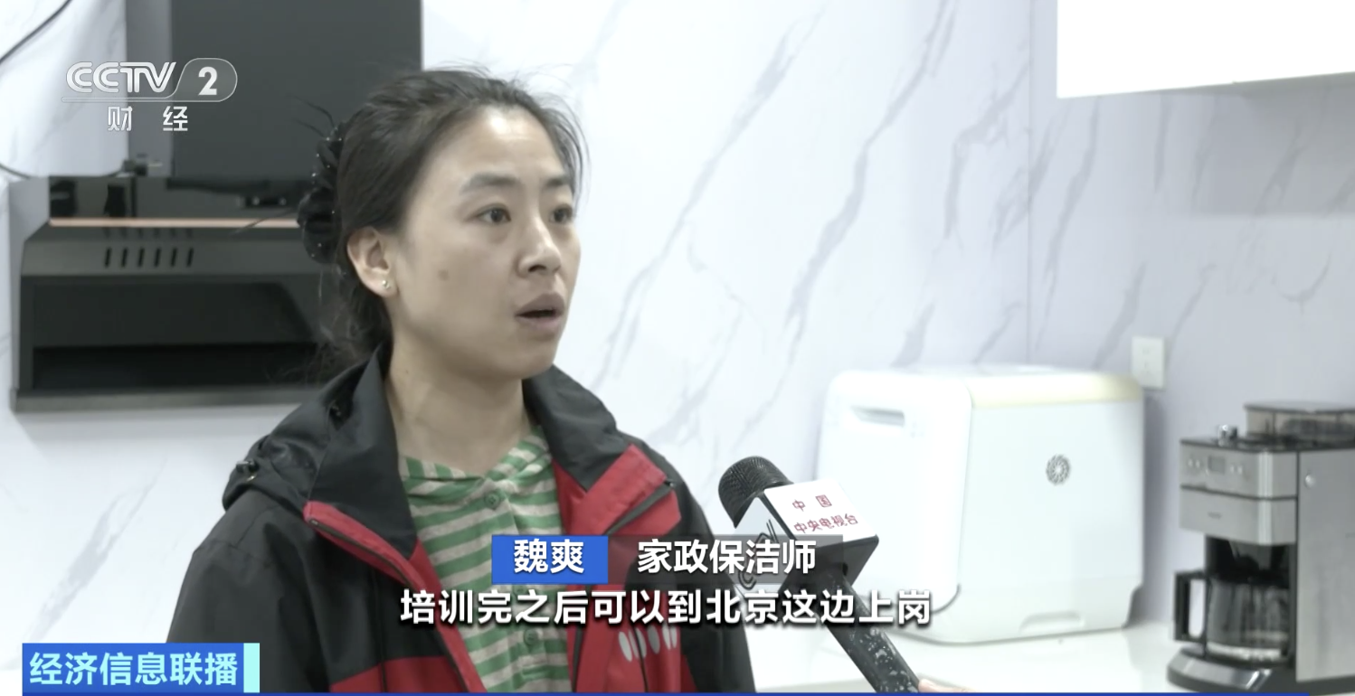 家政保洁师 魏爽:培训完之后可以到北京这边上岗,第一周食宿是免费的,往返的车费也都给报销,如果能长时间干下来之后,有2000元钱的稳岗补贴,是政府直发的。
