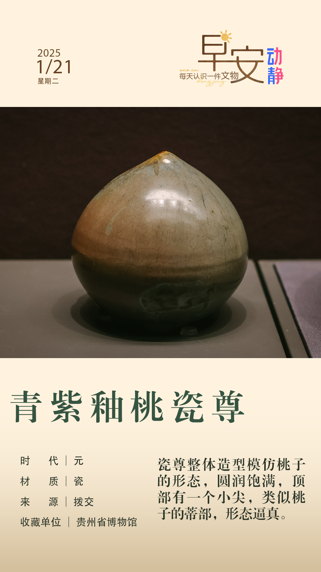 早安丨每天认识一件文物:青紫釉桃瓷尊