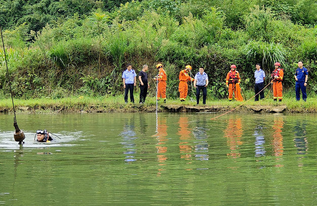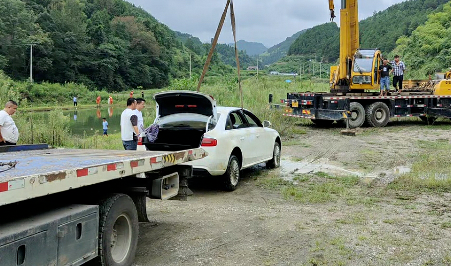 8月15日14时17分,岑巩县消防救援大队接到110转警称,一小轿车不慎滑进岑巩县㵲水街道马坡村路段一鱼塘中,小轿车被鱼塘“吞没”,特向“蓝朋友”求助,岑巩县消防救援大队接警后,立即出动一个抢险救援编队前往现场处置。