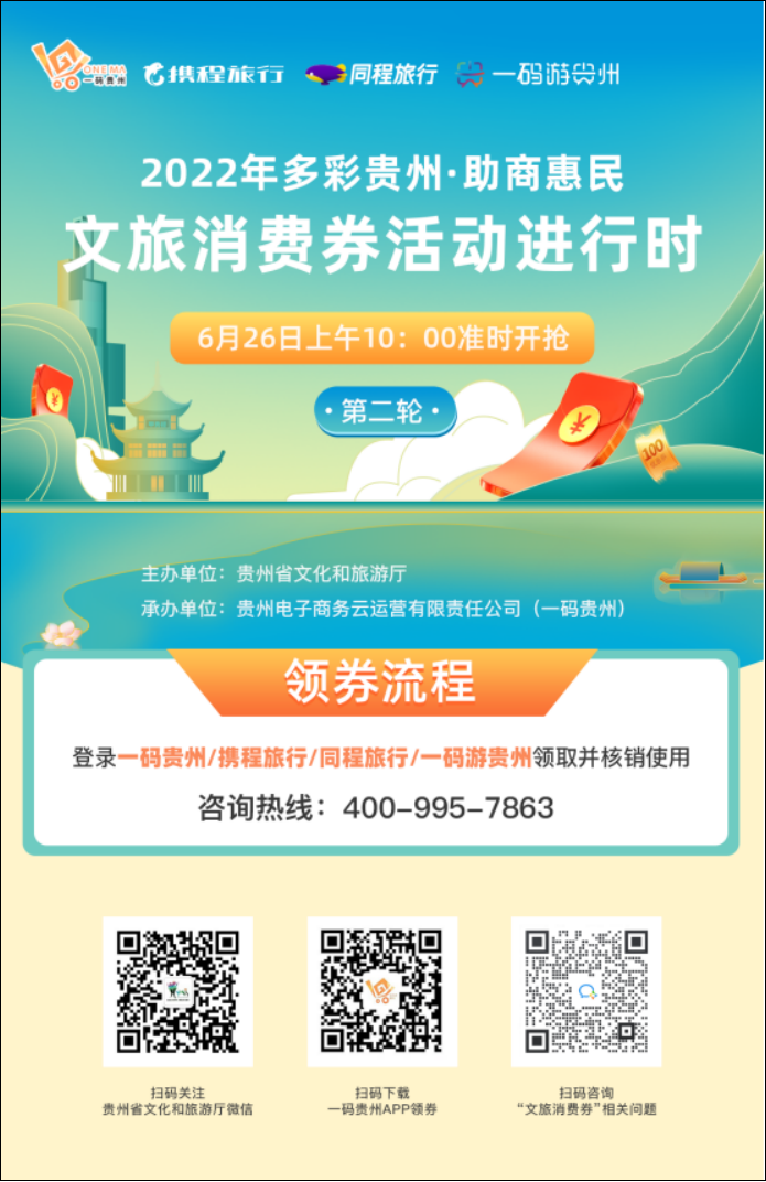 冲啊!早上10:00 “多彩贵州·助商惠民”文旅消费券准时开抢