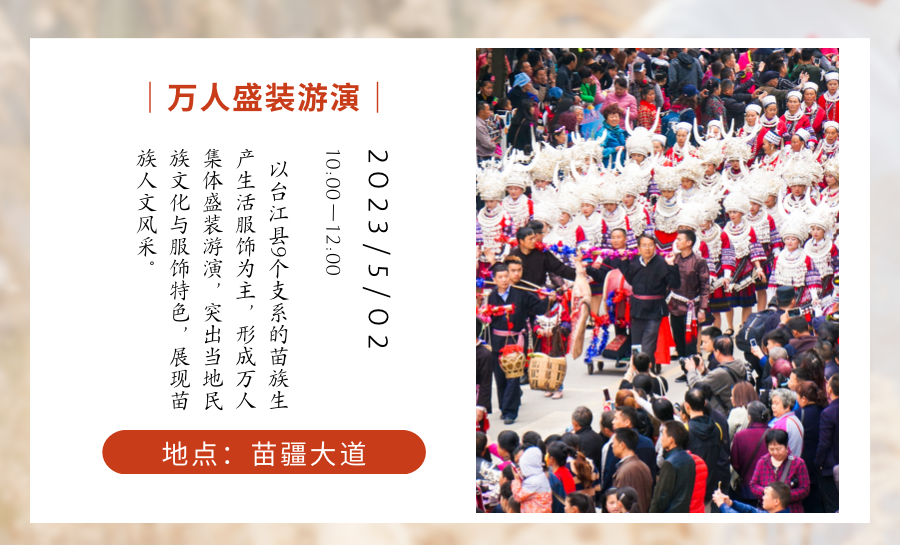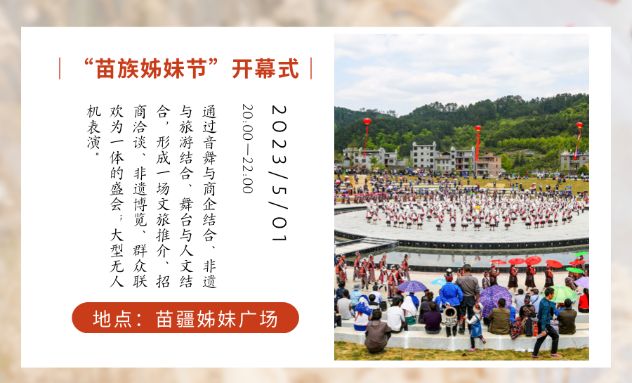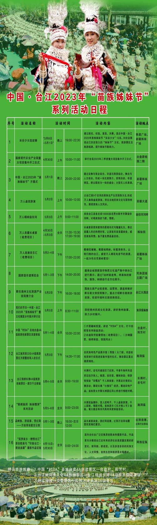 中国•台江2023年“苗族姊妹节”系列活动将于4月30日至5月6日在贵州台江县举行。