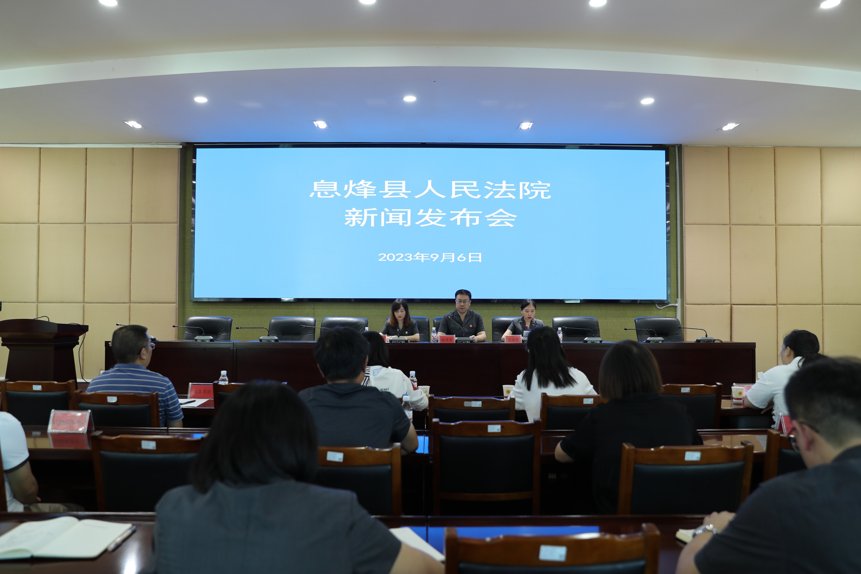 2023年9月6日上午,息烽县人民法院召开“践行能动司法理念,助力营商环境优化”新闻发布会。县法院党组书记、院长杨晓智,县投促局、县发改局、县工商联分管领导出席发布会。企业家代表、有关新闻媒体及县法院相关负责同志参加发布会。县法院审判委员会专职委员颜丽霞主持发布会。
