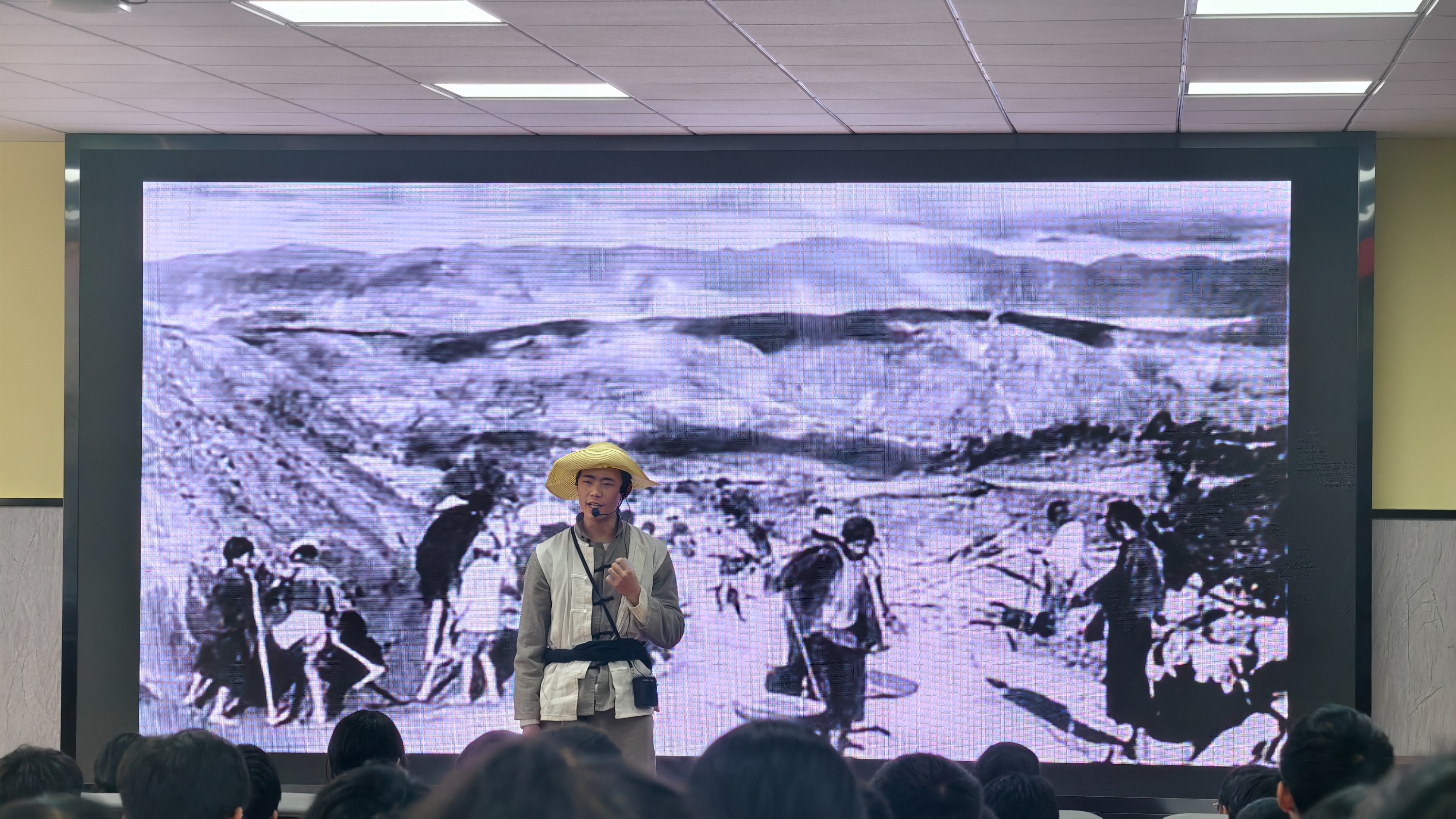 课堂围绕三条与贵州密切相关的历史线索展开:红军长征途中发布的抗日布告、抗战时期西南交通命脉“二十四道拐”的修筑、以及抗战时期文物南迁过程中贵州承担的重要转运使命。讲解员据此构建叙事脉络,志愿者则化身修路民工、草棚大学教员与文物护送人员,以第一人称视角参与教学,引导学生从人物经历中理解当年情境。