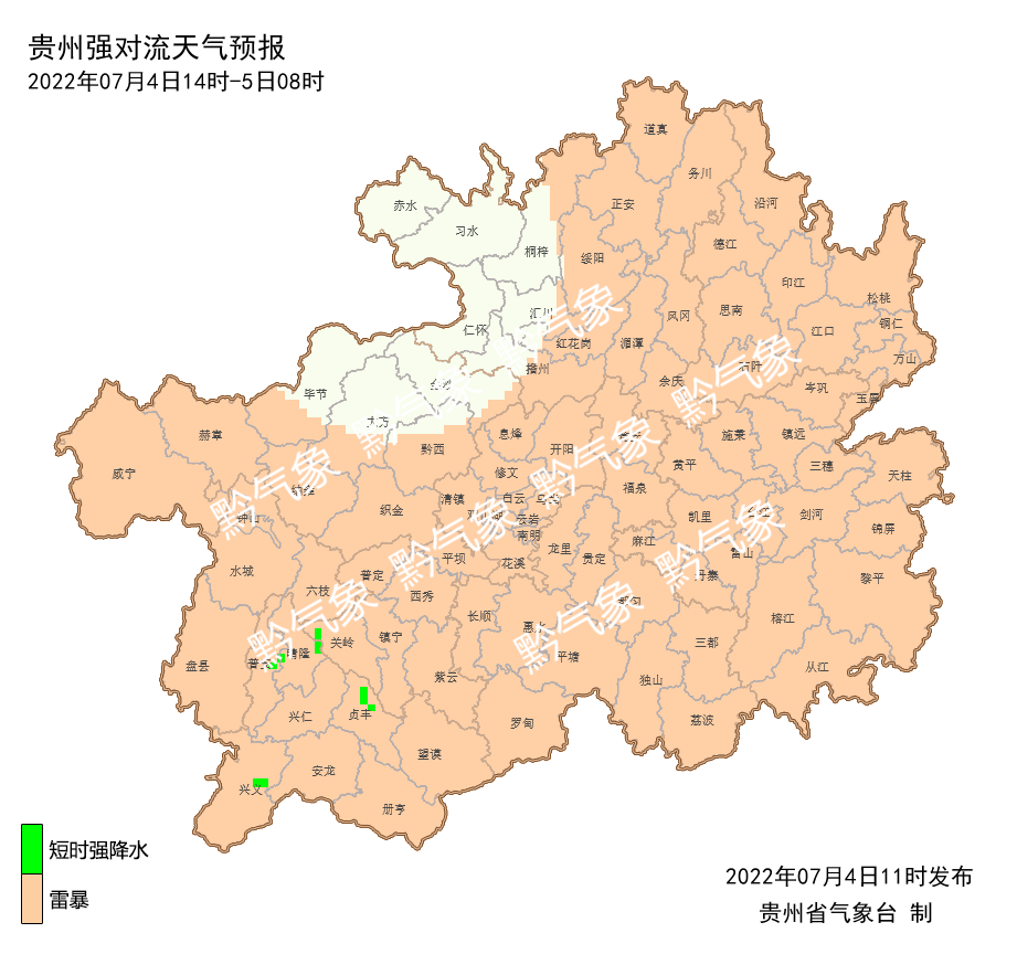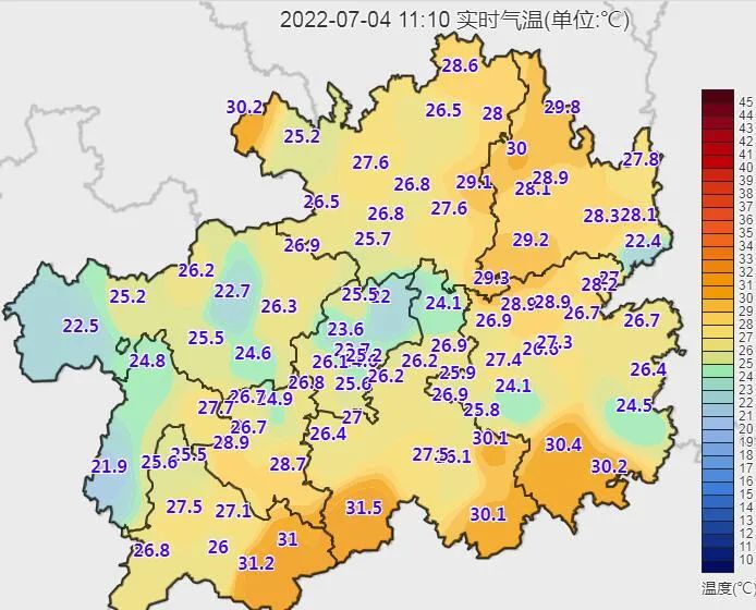 6日夜间到7日白天,省的东部和南部地区阴天间多云有阵雨或雷雨,其余地区多云。未来3天,省的东北部和赤水河谷午后有35℃以上高温。