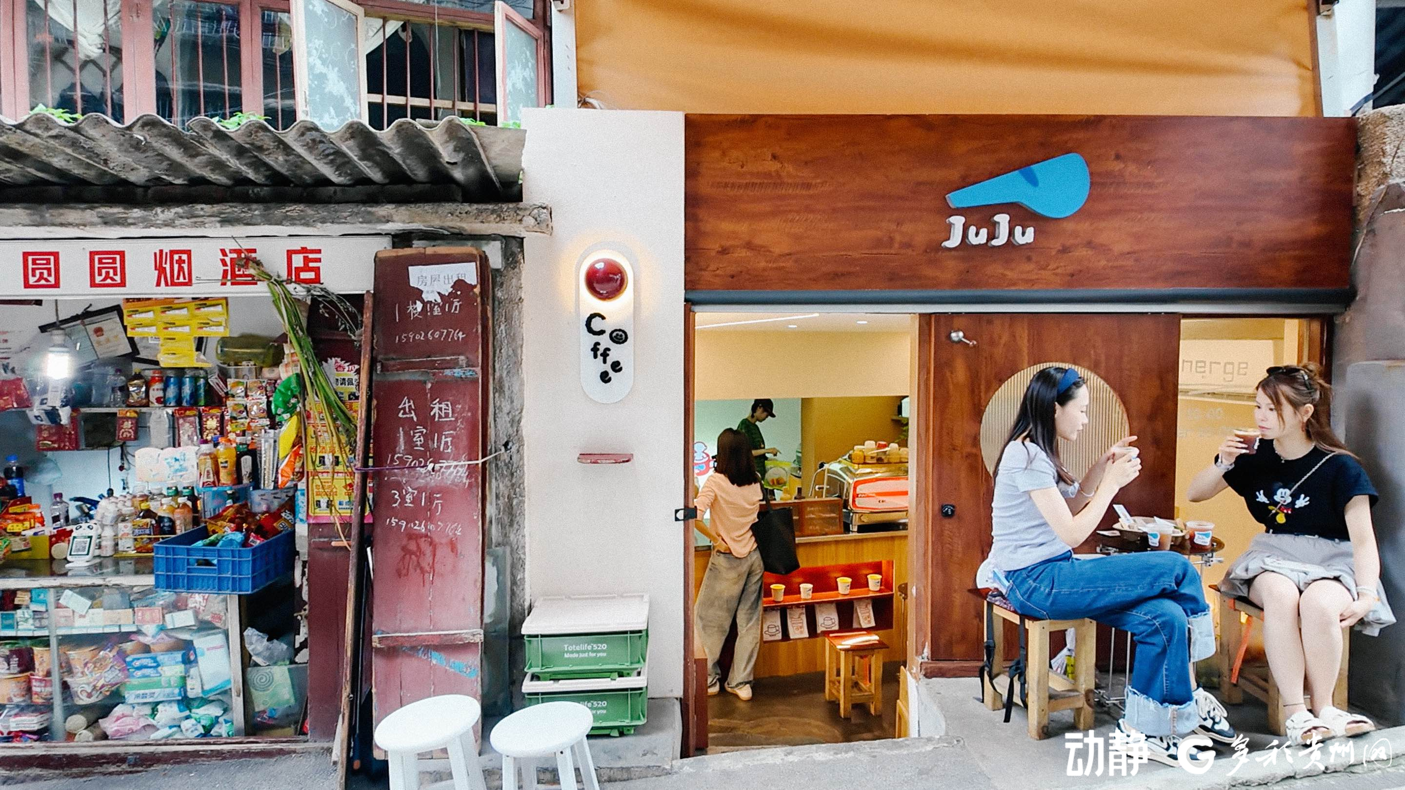 贵阳的这些咖啡店,给人一种柳暗花明又一村的“反差”。但这种反差不仅没有违和,反而表现出一种“不做作”的自洽,这种独有的深巷文化,打破了游客和当地人心理和空间上的界限,好像在说,“来吧,来了就是自家人。”
