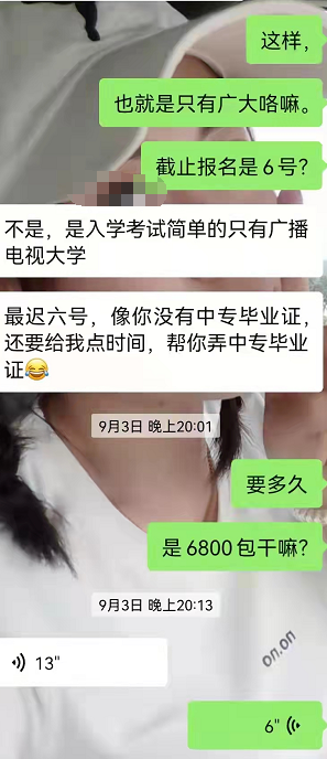 今年9月,偶然之下她通过网络上看到了一家名叫贵州伟德明思教育集团的公司,想要将自己的学历提升到大专。