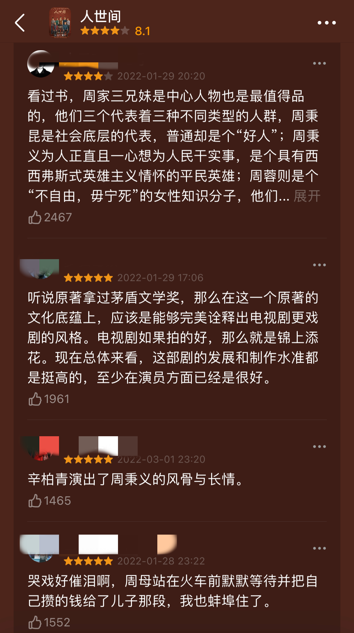 《人世间》网友留言