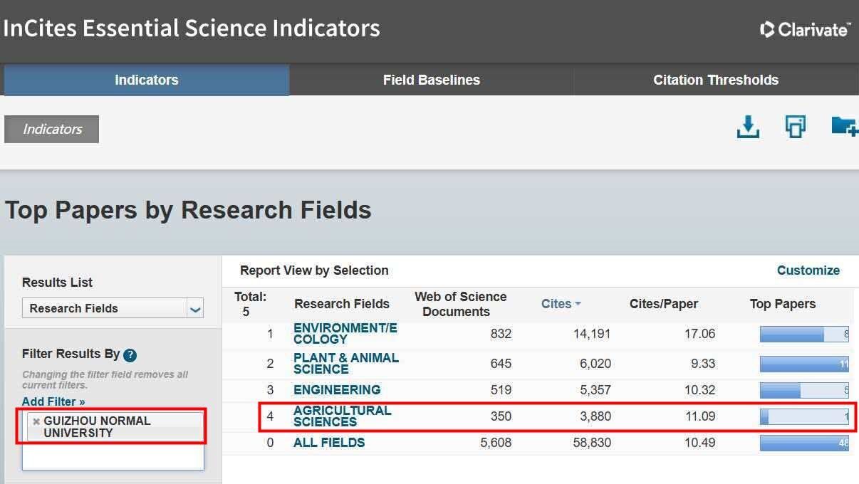 贵州师范大学农业科学学科首次跻身ESI全球排名前1%