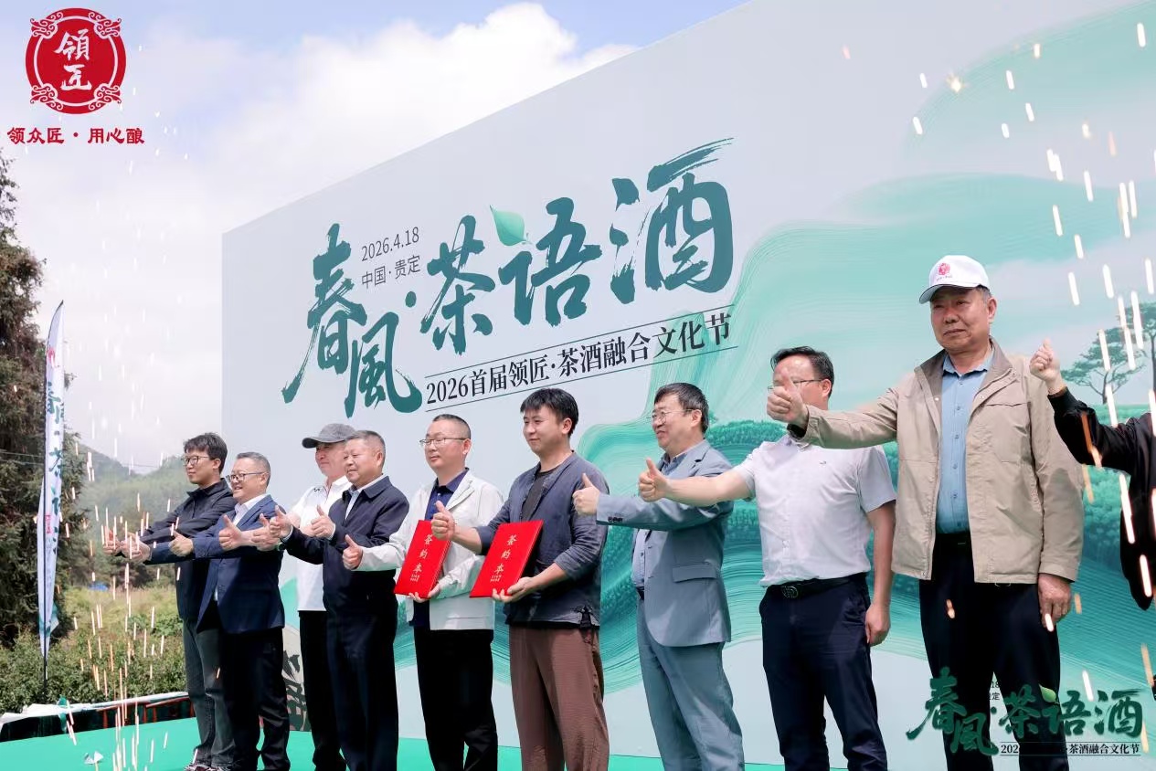 2026年4月18日,由贵州领匠酒业(集团)有限公司主办的“春风•茶语酒——2026首届领匠•茶酒融合文化节”在贵定县云雾镇举行。这是一次产业与文化的双向奔赴,来自贵州大学酿酒与食品工程学院、贵州省食品工业协会、贵定县云雾镇党委政府、贵定县茶产业化发展服务中心、云雾贡茶等政、产、学、研各界的领导、专家、合作伙伴出席并共同见证了贵州茶与酒的首次系统性融合。