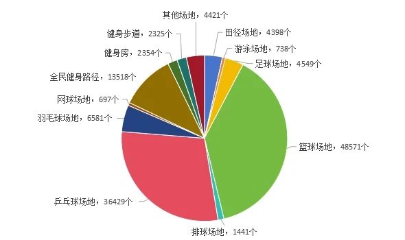 全省篮球场地48571个。其中,篮球场46267个,占95.26%;三人篮球场1355个,占2.79%;篮球馆949个,占1.95%。