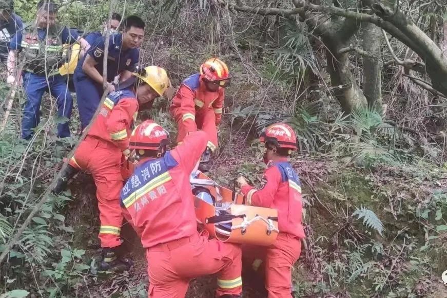 医护人员赶到现场后,立即对老人进行初步治疗,并利用夹板护具对老人的腰部进行固定。随后消防救援人员小心地将老人移动到救援担架上,转移至山脚下安全区域,并送医救治。