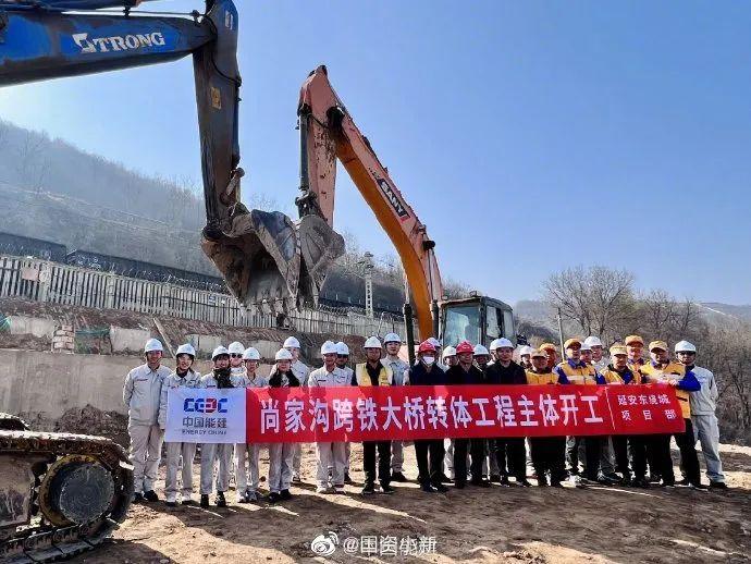 4月1日,由中国能建承建的延安东绕城高速尚家沟跨铁大桥转体工程主体开工建设。
