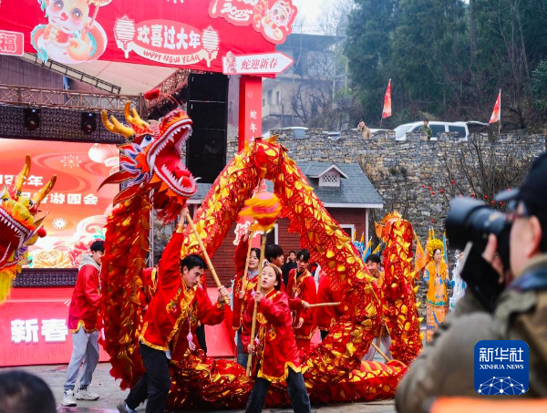 观看舞龙就是其中一项颇受游客欢迎的活动。鼓声响起,小伙子们手举色彩艳丽的两条中华龙蜿蜒舞动,时而翻转腾跃、时而相互缠绕,喜庆的表演让现场气氛更加热烈。