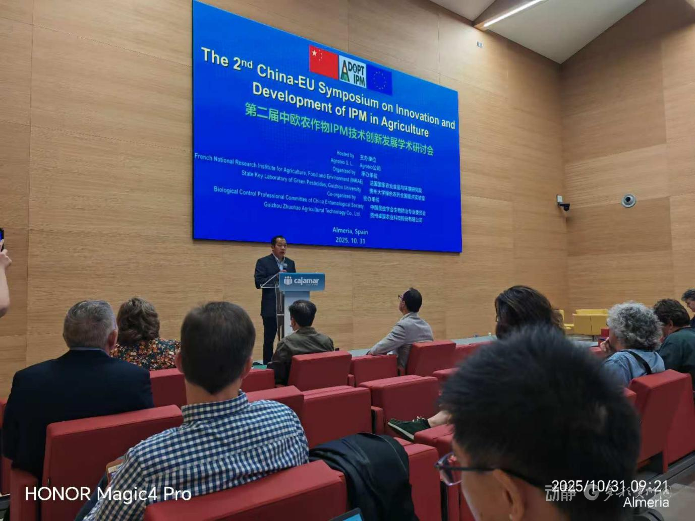 第二届“中欧农作物病虫害综合治理关键技术创新合作研究”项目年会暨第二届中欧农作物IPM技术创新发展学术研讨会,于2025年10月26日至11月1日在西班牙阿尔梅里亚市成功举办。作为去年在贵阳举办首届活动后进行的第二届,中方此次派出19名项目成员代表参会。中欧双方在地中海岸围绕共同关注的重要农作物病虫害综合治理技术,就已有科技成果、现存问题与下一步计划展开了深入交流。