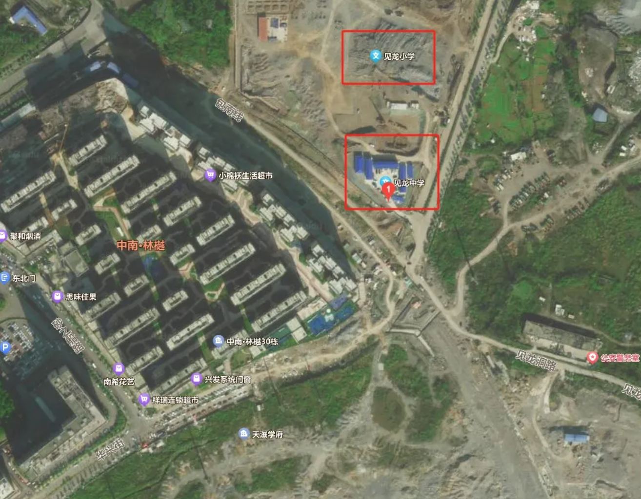 据悉见龙小学和见龙中学已有四栋大楼主体封顶,下月即可进场装修;其余楼栋正在紧密锣鼓地建设中,相信等到见龙小学和中学建成后,将更好地满足周边新建小区居民家庭孩子的就近入学需求。目前学校周边有中南·林樾、天瀑学府等地产项目。