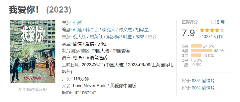 最近几年,现实题材家庭片在端午档收获不少,21年《人生大事》作为一部小成本影片在端午档成为一匹黑马;23年的《我爱你!》在无流量主演的情况下也获得了符合预期的市场表现。但宏观来看,最近几年家庭片的市场能效逐渐降低,《来福大饭店》若想成为黑马,大前提一定是话题性和内容品质。