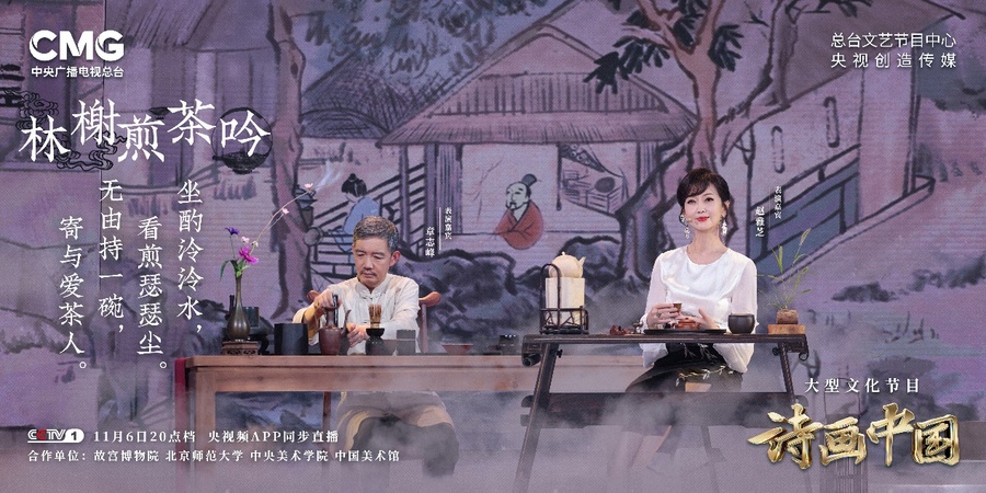 古往今来文人墨客们爱茶,不只为品尝其清香味道,更为追求修身养性的生活情趣。在第六期《诗画中国》的舞台上,演员赵雅芝还原明代的瀹饮法,并以《山泉煎茶有怀》与《一字至七字诗·茶》,表达对茶的喜爱与泡茶、饮茶的乐趣。