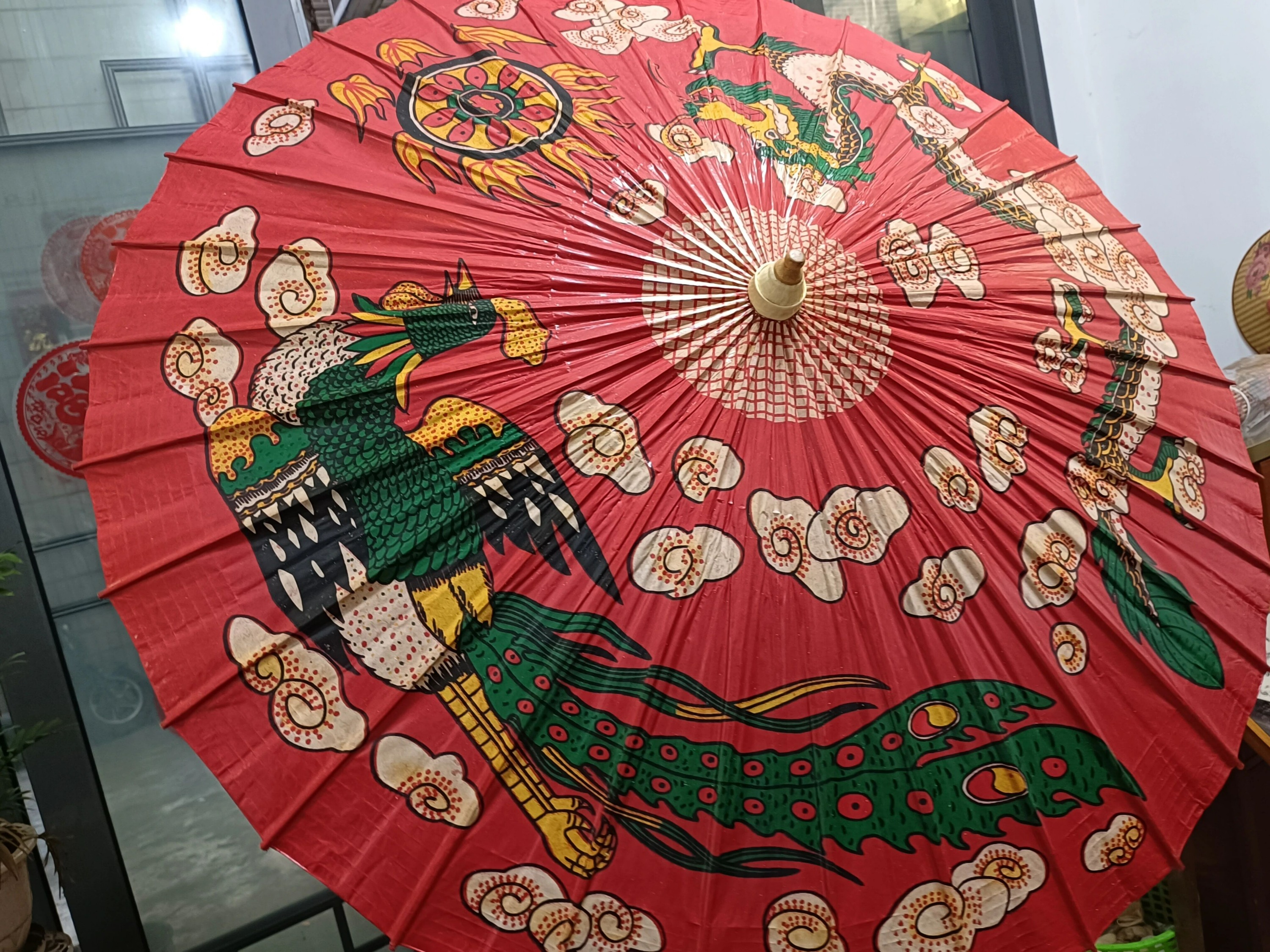 “现在年轻人结婚,既要西式婚纱,有的也要定制一把手绘油纸伞。”张朝全展示着最新设计的“龙凤呈祥”系列,伞面的龙凤图案栩栩如生,喜庆祥和。