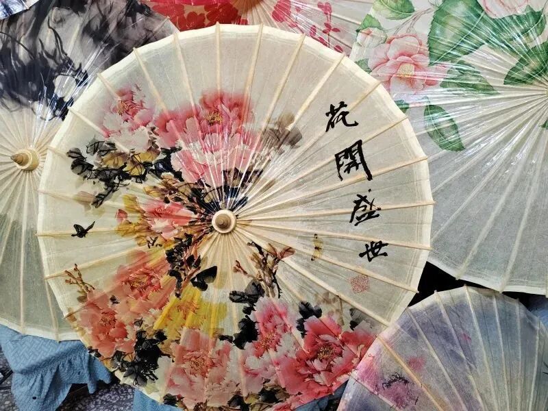 而糊纸环节更显精妙,特制的皮纸需经多次浸染、阴干,方能呈现“薄如蝉翼,透光不透雨”的质感。粘合用的是细火熬制的柿子油,伞面涂桐油也特别讲究,熬桐油是关键,有较高的技术含量,过火或欠火,熬出的桐油都将直接影响油伞的质量。还有为了加固和美观,每一次都得快速、均匀,一般要涂3--5次,当最后一层桐油均匀涂抹,伞面便泛起温润的光泽,宛如一幅流动的水墨画。